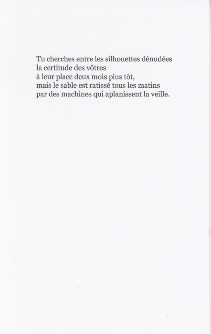 À chaque page, quelque chose se précise et se dérobe : elle, son visage, ce qu'ils ont vécu. Le réel passe à l'arrière plan, au profit des souvenirs et des questionnements qui le tenaillent ; son absence envahit complètement sa vie et ses journées. La lumière brûle le paysage et efface les corps. À quoi se raccrocher quand le manque fait douter de tout, quand l'horizon ondule au lieu d'être droit ? »