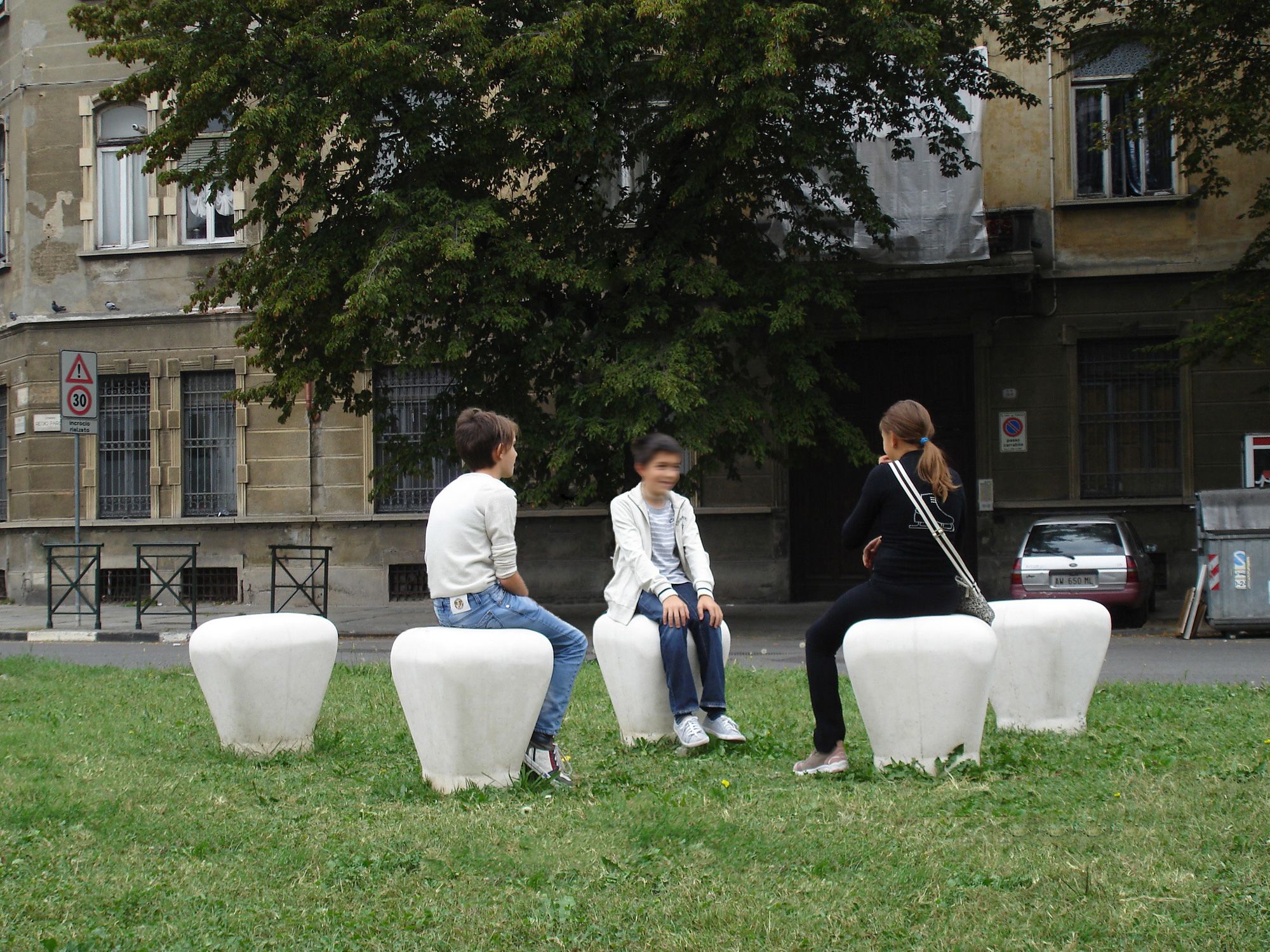 Projet réalisé dans la cadre de City Switch, résidence dans un tramway à Turin organisée par la Galerie Tator (Lyon), en collaboration avec l'association Progetto Diogene (Turin). L'œuvre a été installée provisoirement à Turin, sur un rond-point et sur le campus Norman Foster.