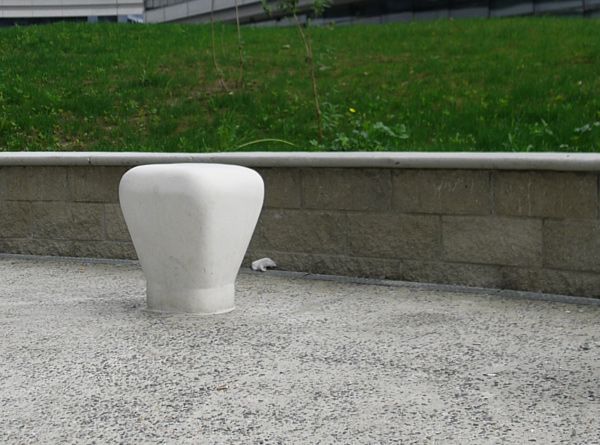 Ce mobilier urbain en béton, dont la forme s'apparente à une dent, vient s'implanter au sol grâce à un pivot. Celui-ci est dédié à la ville, c'est un compromis entre le plot et l'assise d'appoint. Une déclinaison possible autour de cette forme a été envisagée pour réaliser par la suite un banc, une fontaine, une barrière, un poteau...