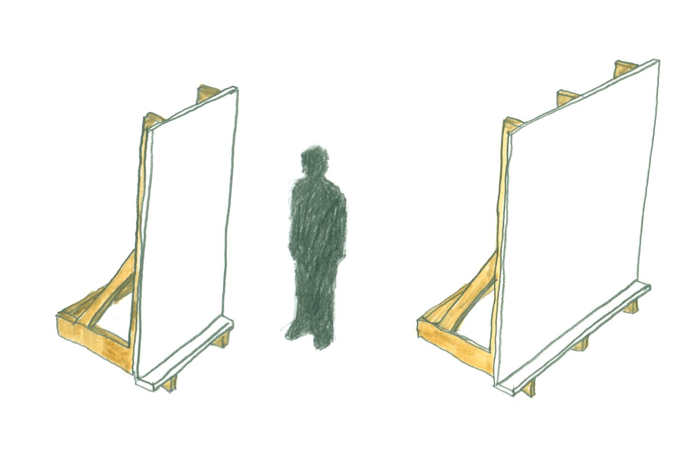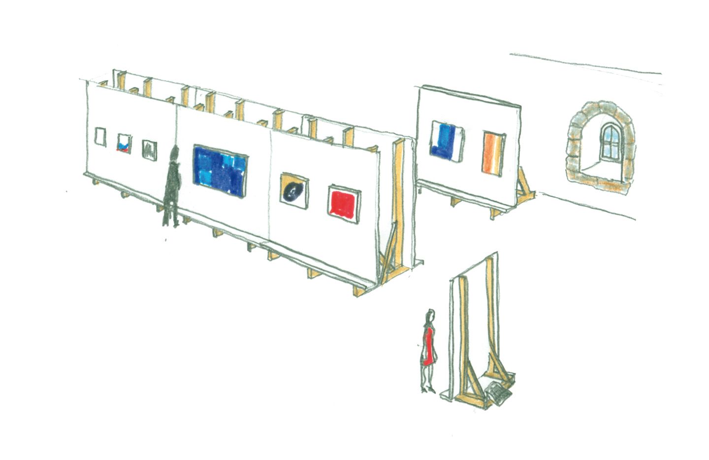 Scénographie d'exposition, Medium Density Fibreboard peint, 3plis épicéa