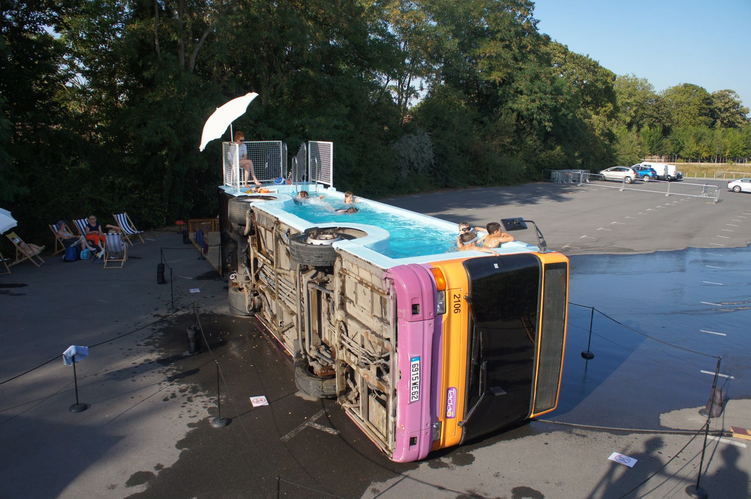 Transformation d’un bus Lensois en piscine publique, Parc du Louvre-Lens