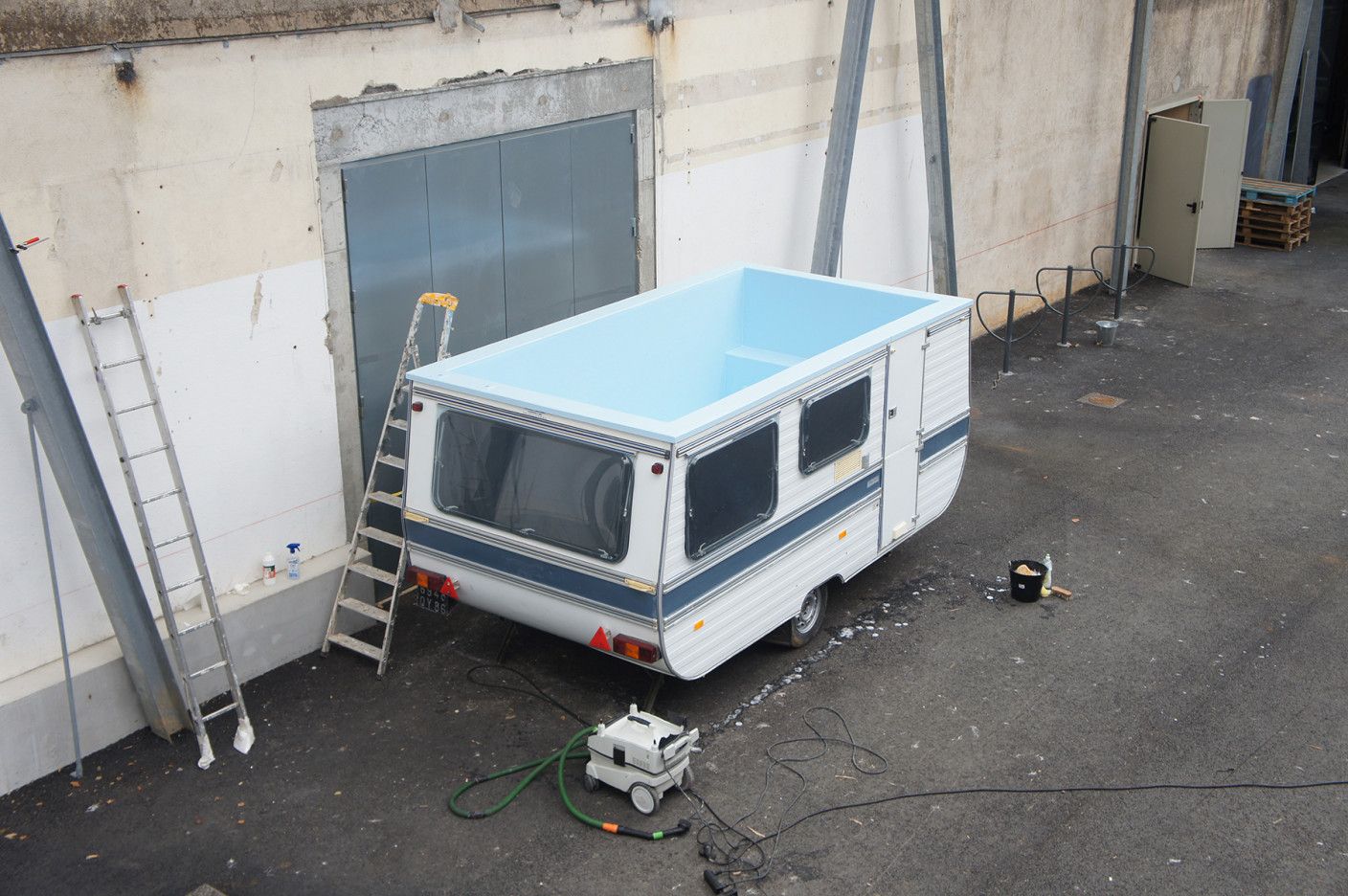 Caravane, résine, fibre de verre, eau, 2 x 4 x 2 m