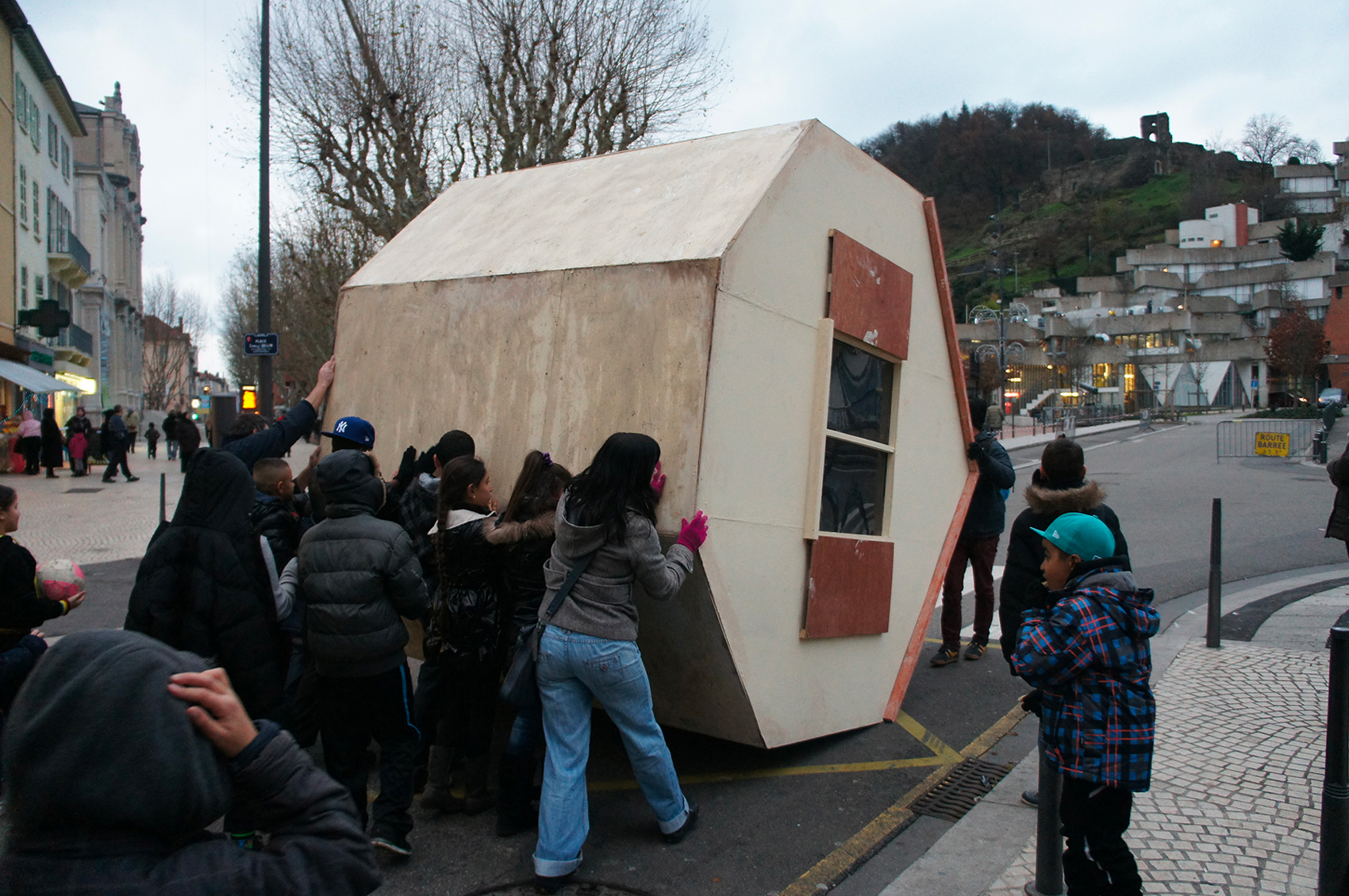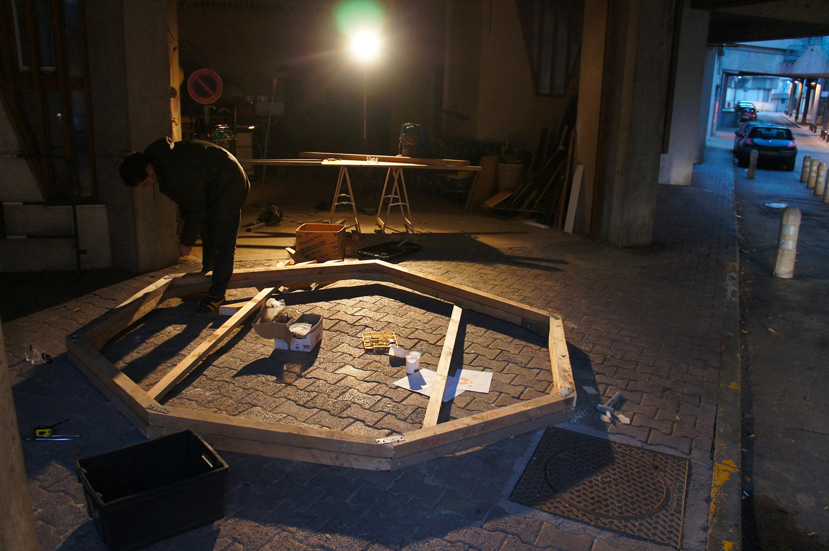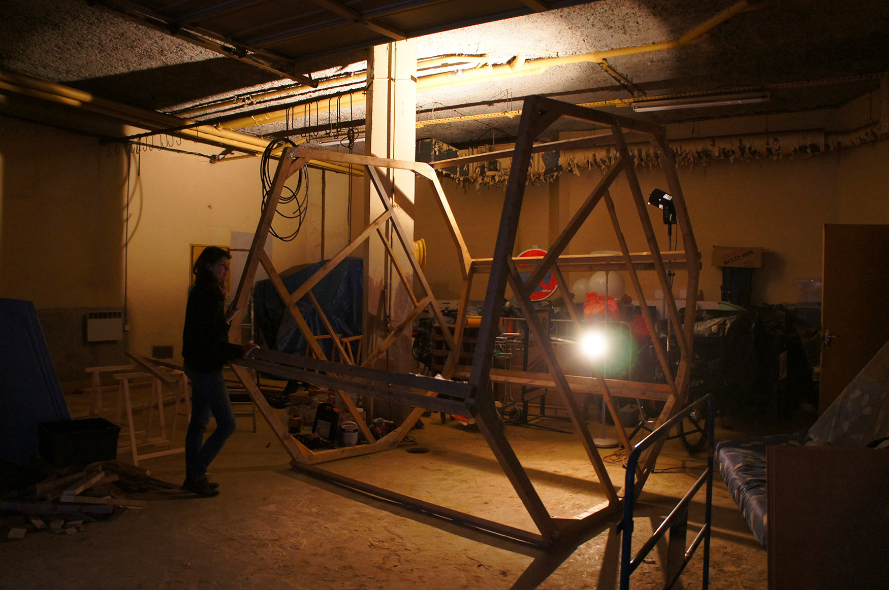 Bois, plexiglass, peinture, 3 x 3 x 3 m