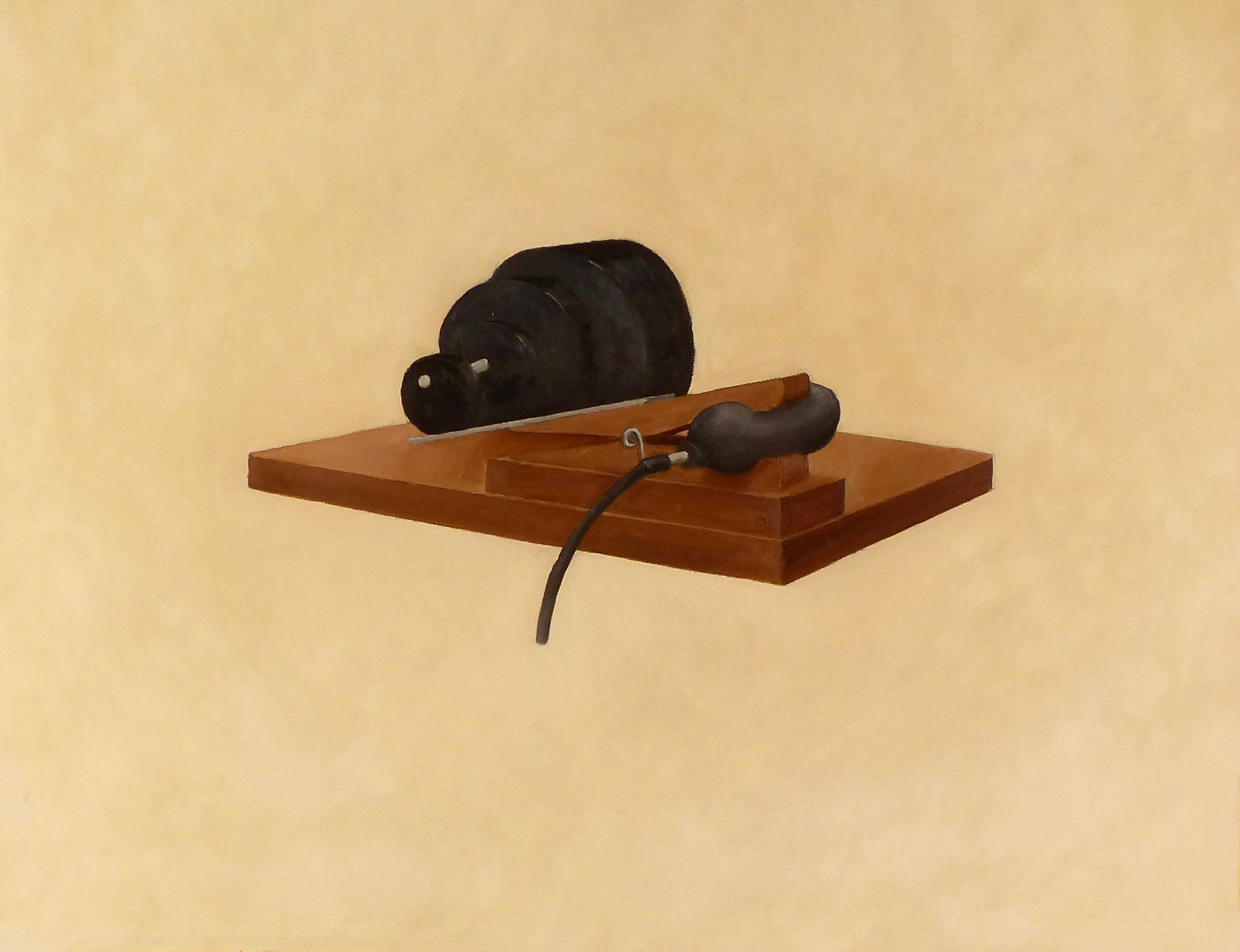 peinture à l'huile sur papier, encadrement placage bois, verre et medium