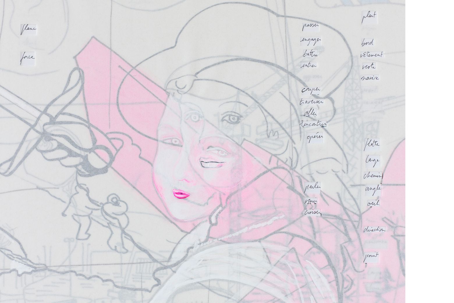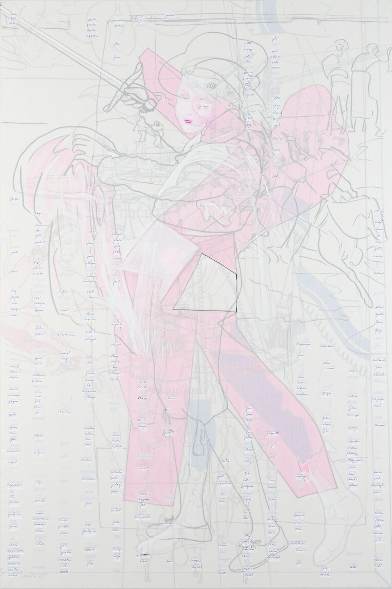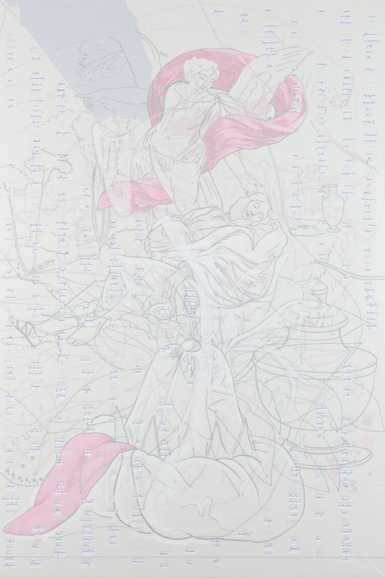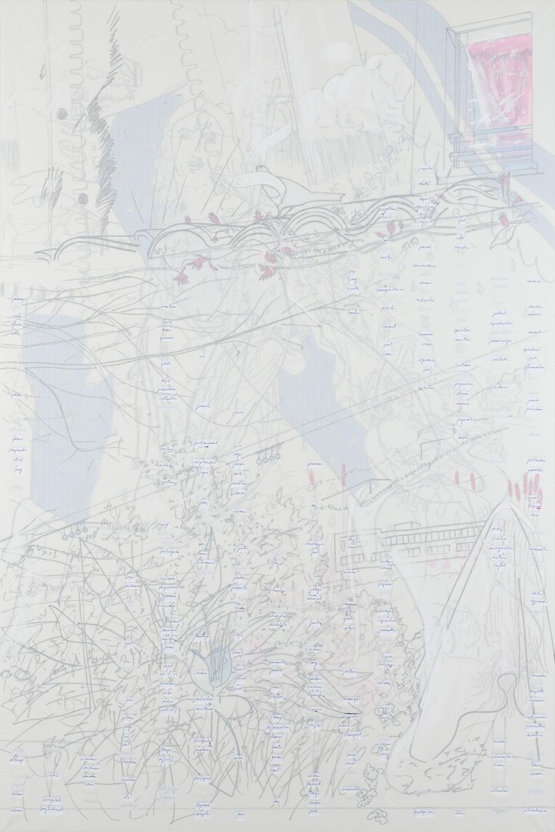 Quatre panneaux 144 x 96 cm, bois 20 mm, papier, feutre, encre de Chine colorée