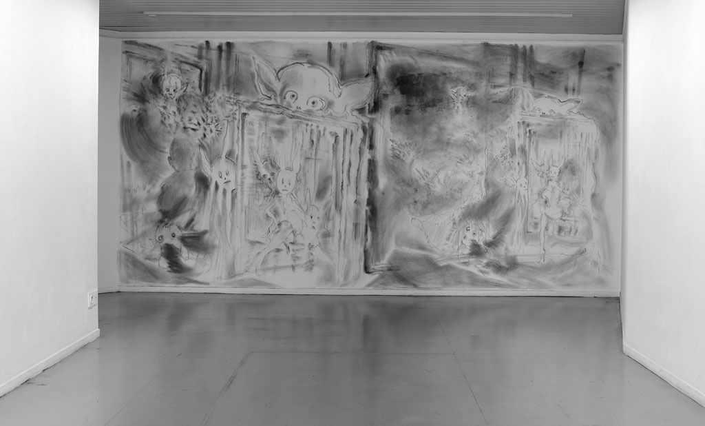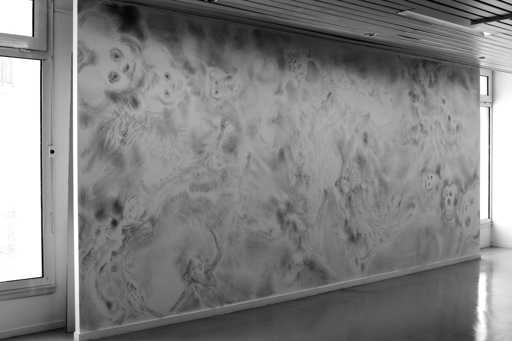 Dessin mural à la poudre de graphite, 2,3 x 4,8 cm