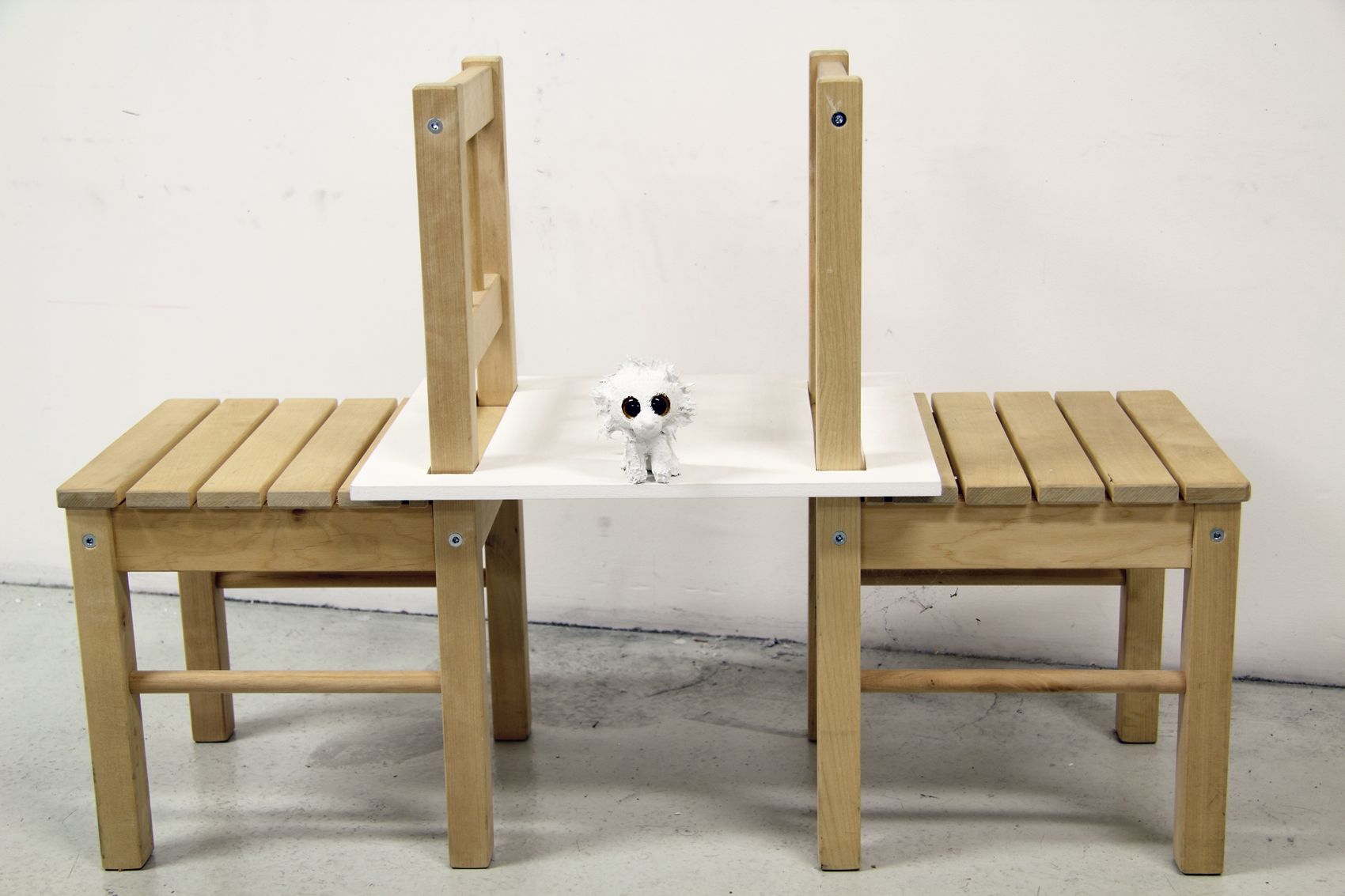 Peluches, bois, peinture, 40 x 54 x 59 cm