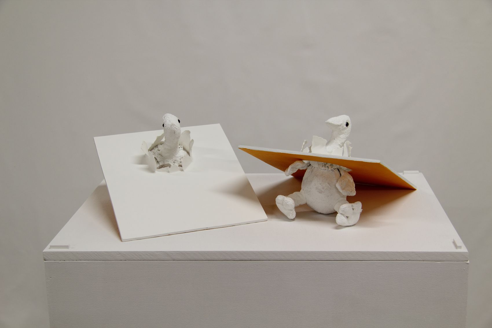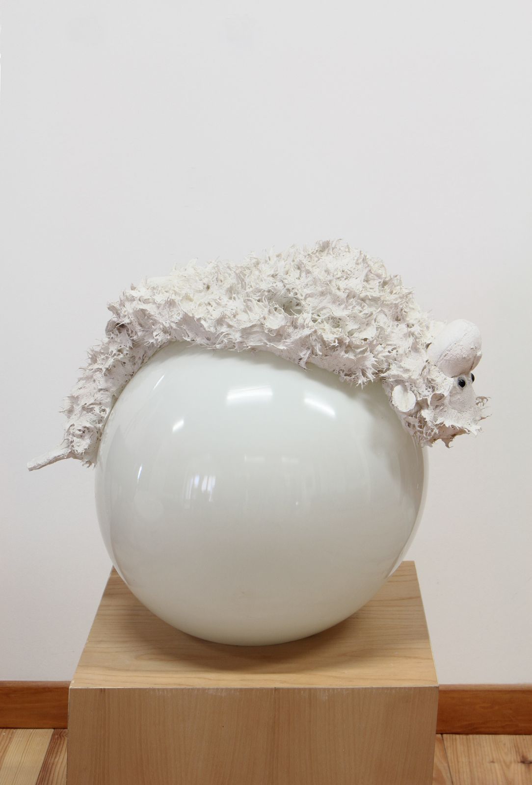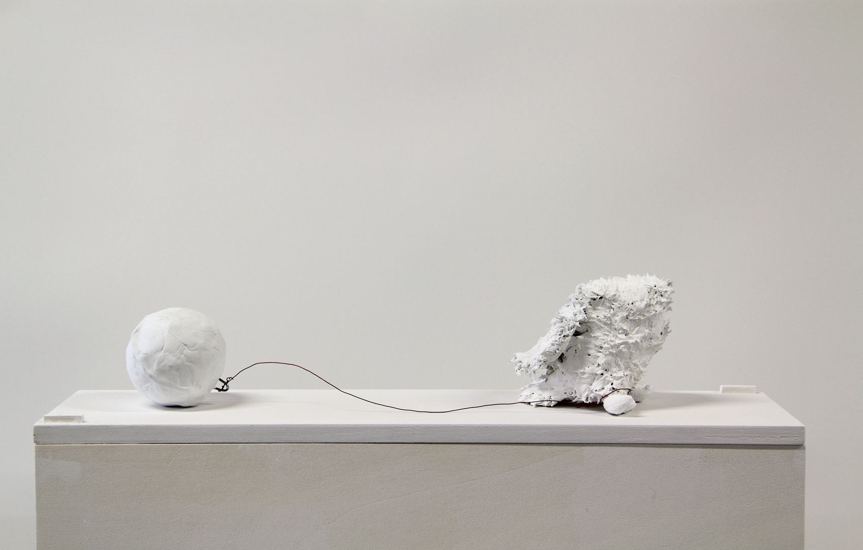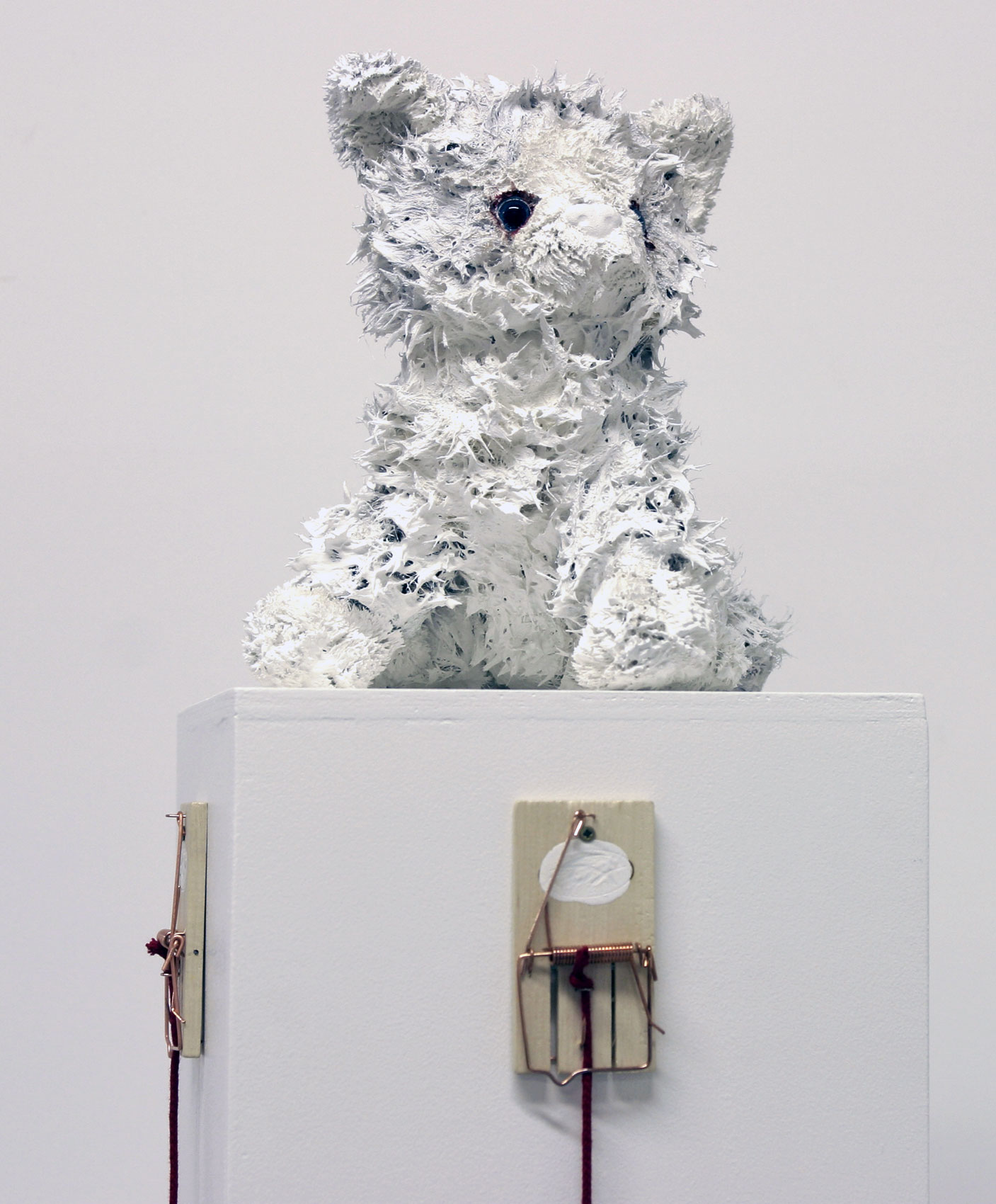 Peluche, pâte plastique, fil de fer, peinture, 59 x 15 x 15 + socle 80 x 59 x 15 cm