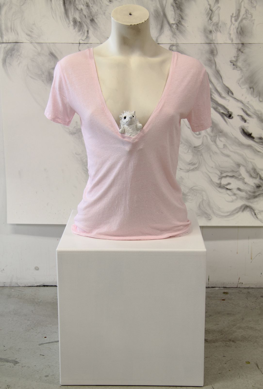 Mannequin, tee-shirt, peluche, bois, peinture, 104 x 43 x 28 cm