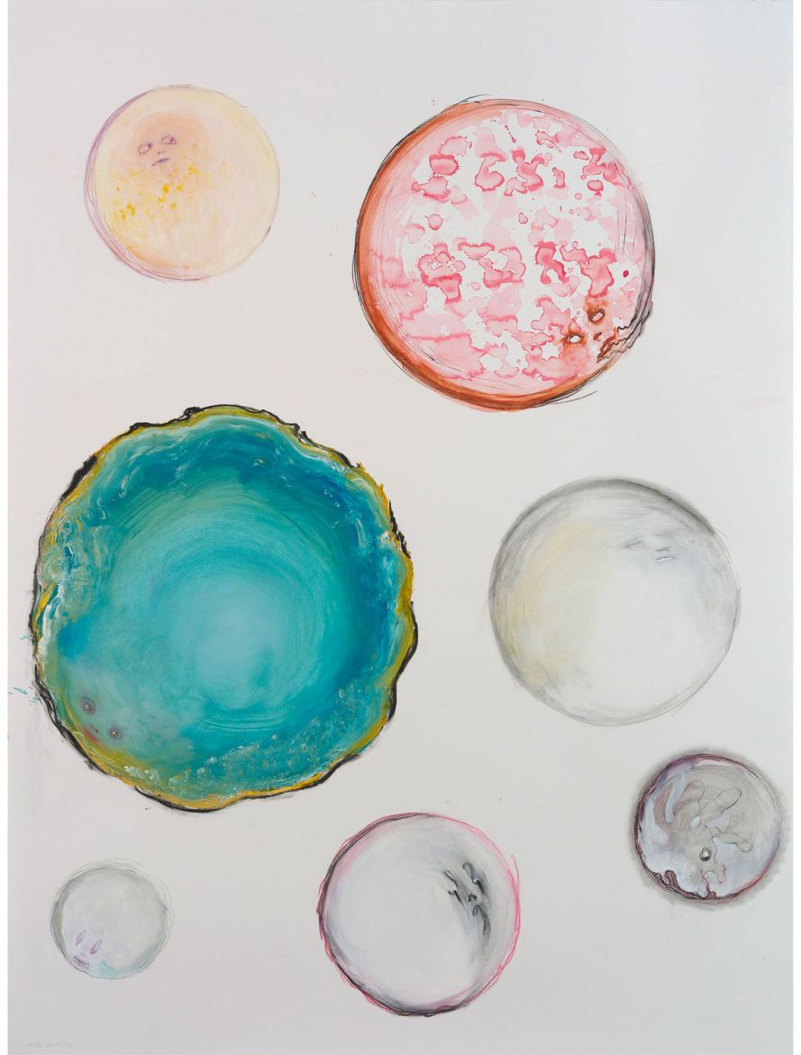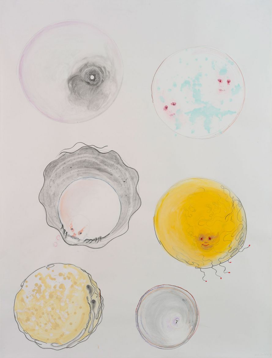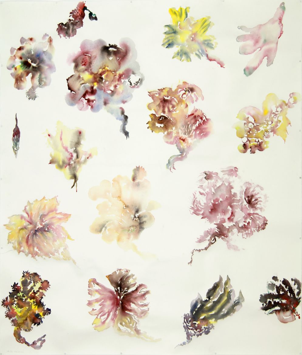 7 dessins, aquarelle, acrylique, gesso, graphite et crayons sur papier, 132 x 114 cm