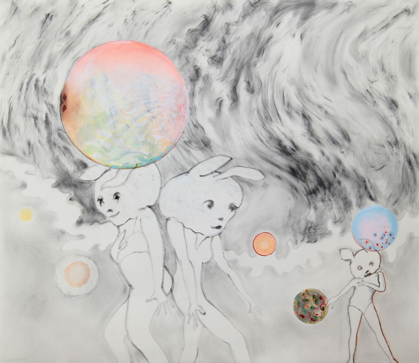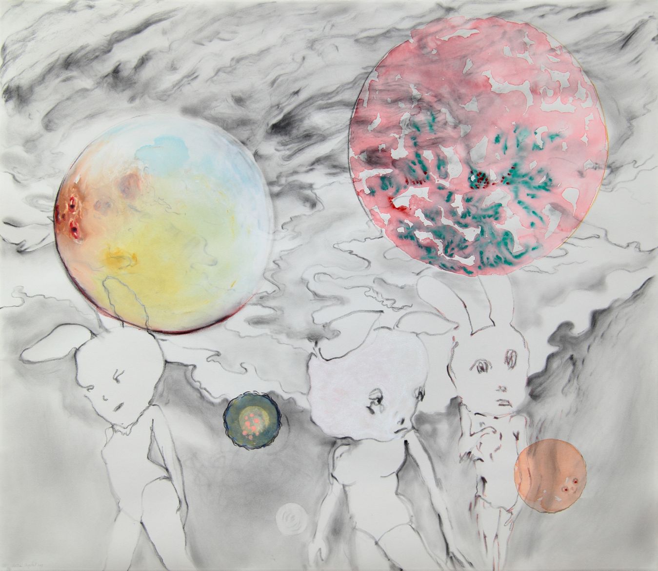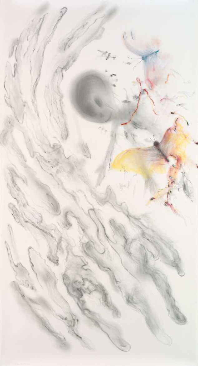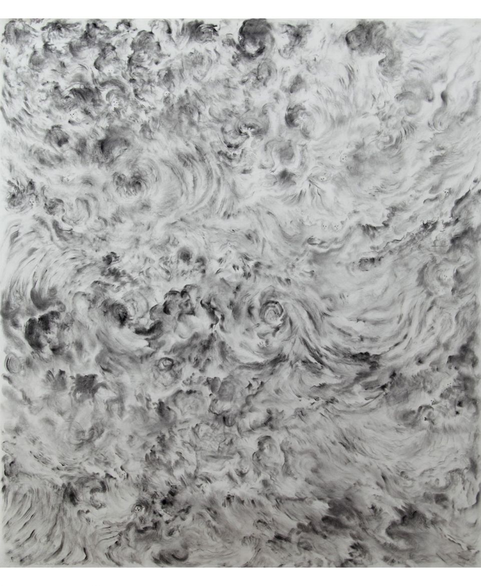 3 dessins, poudre de graphite et aquarelle sur papier, 132 x 115 cm