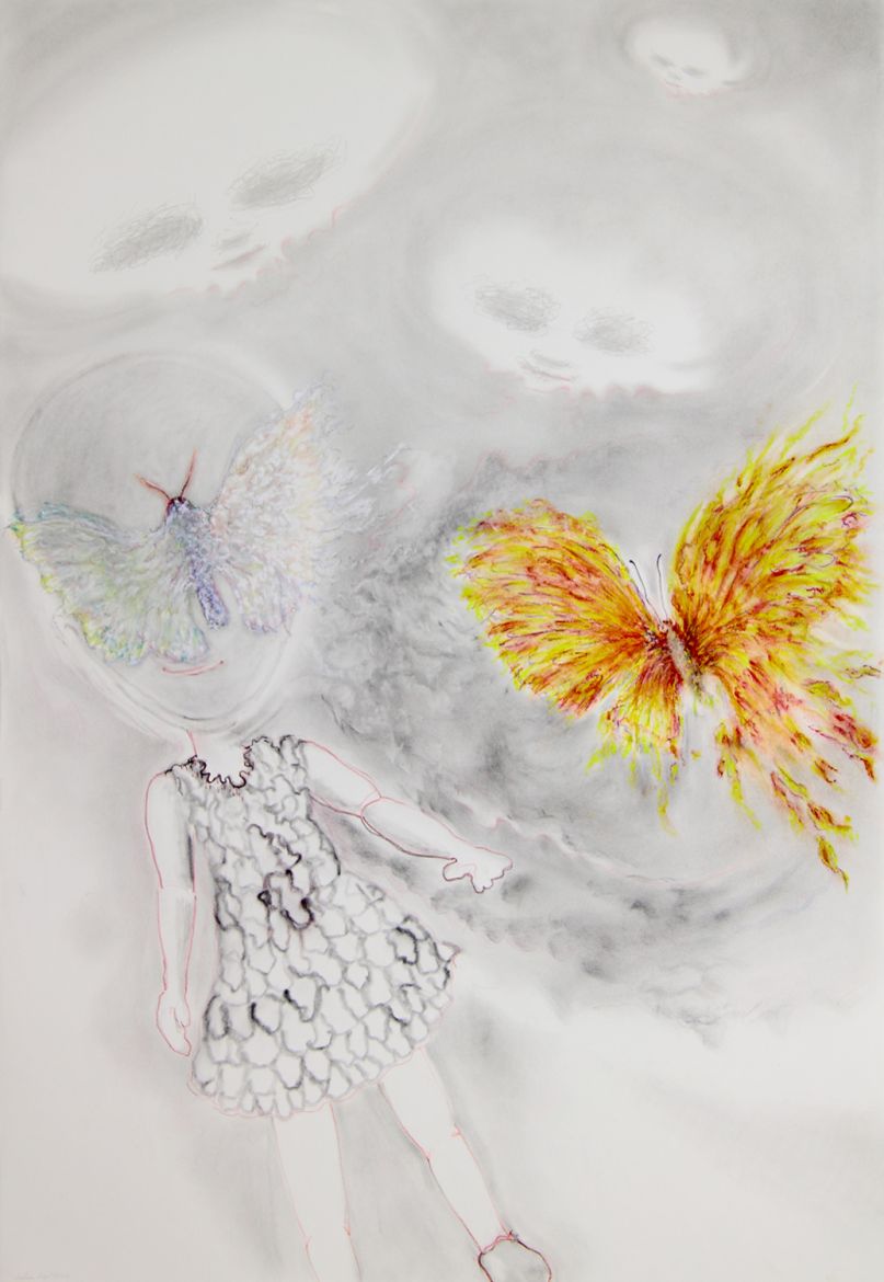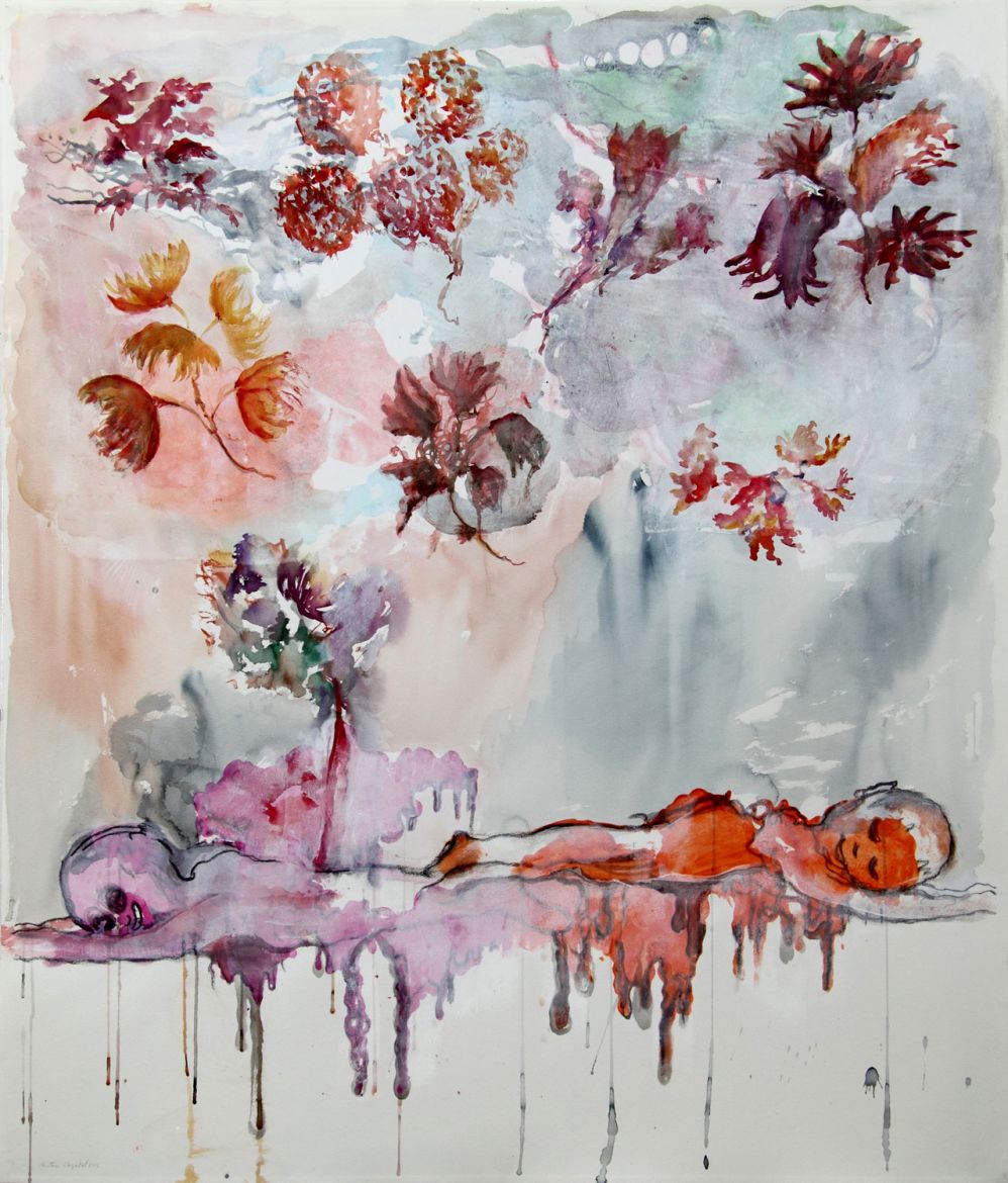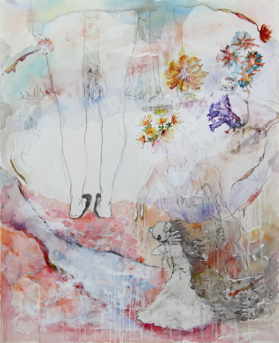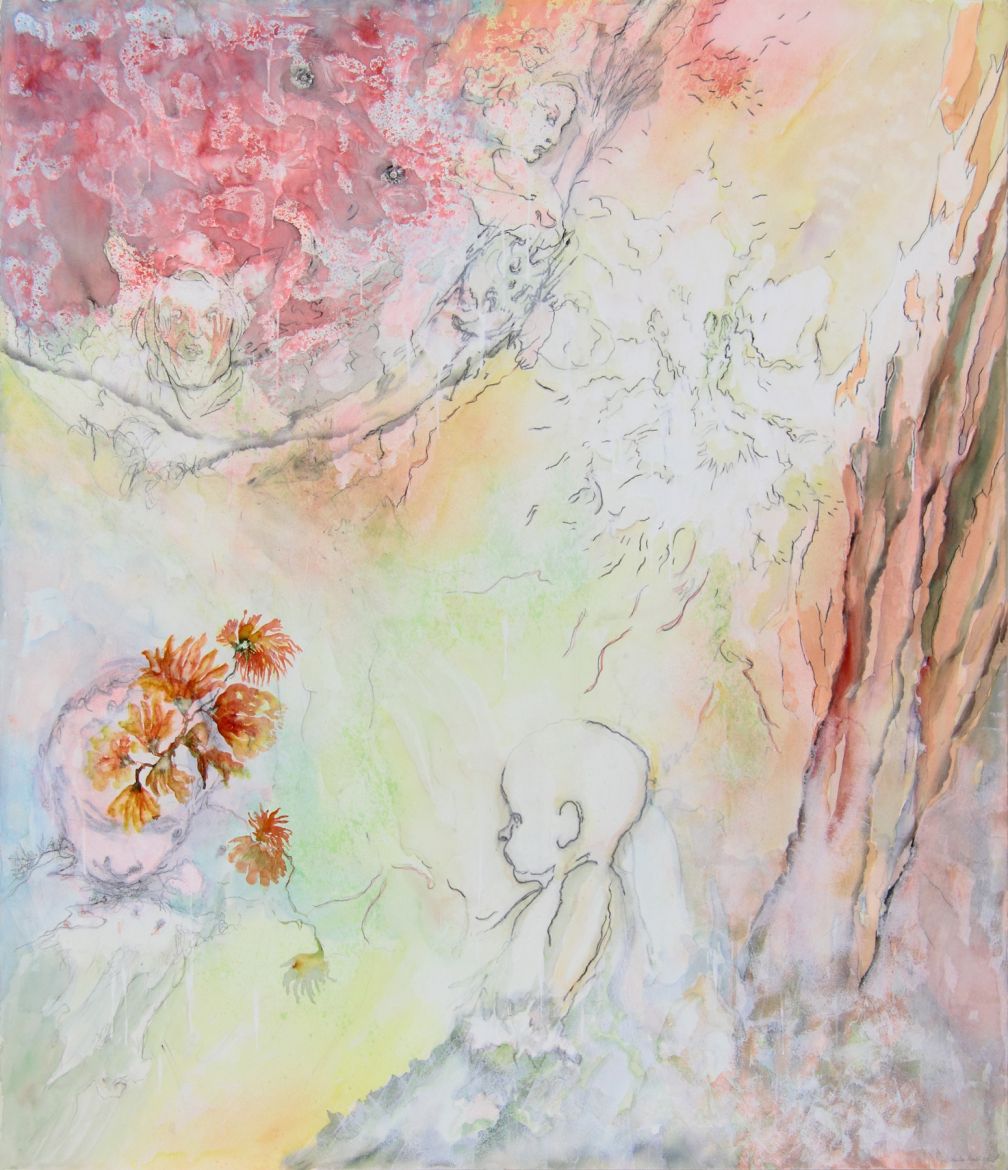 Aquarelle et crayons sur papier, 134 x 114 cm