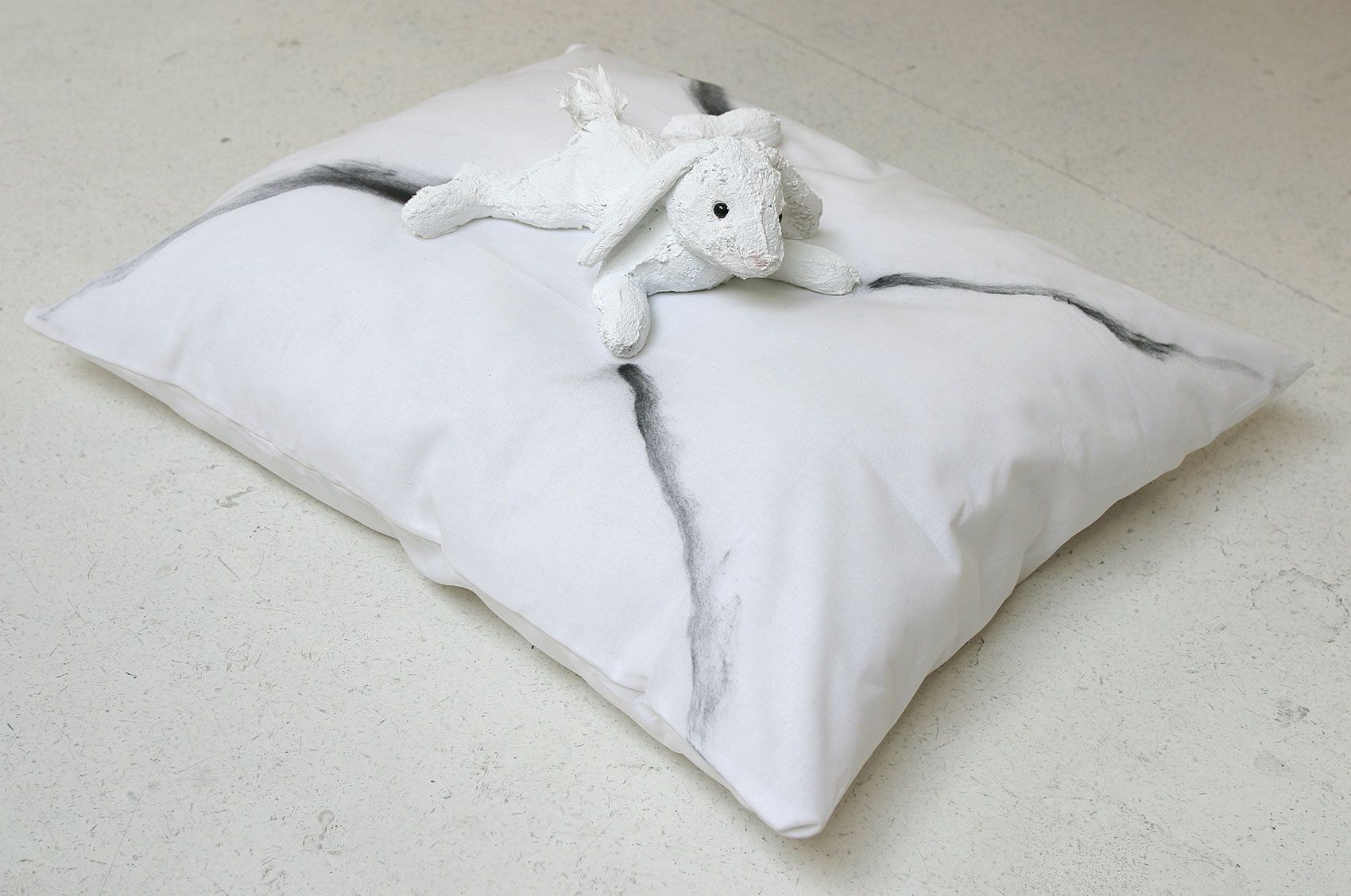 Coussin, peluche, peinture, graphite, 57 x 47 x 23 cm