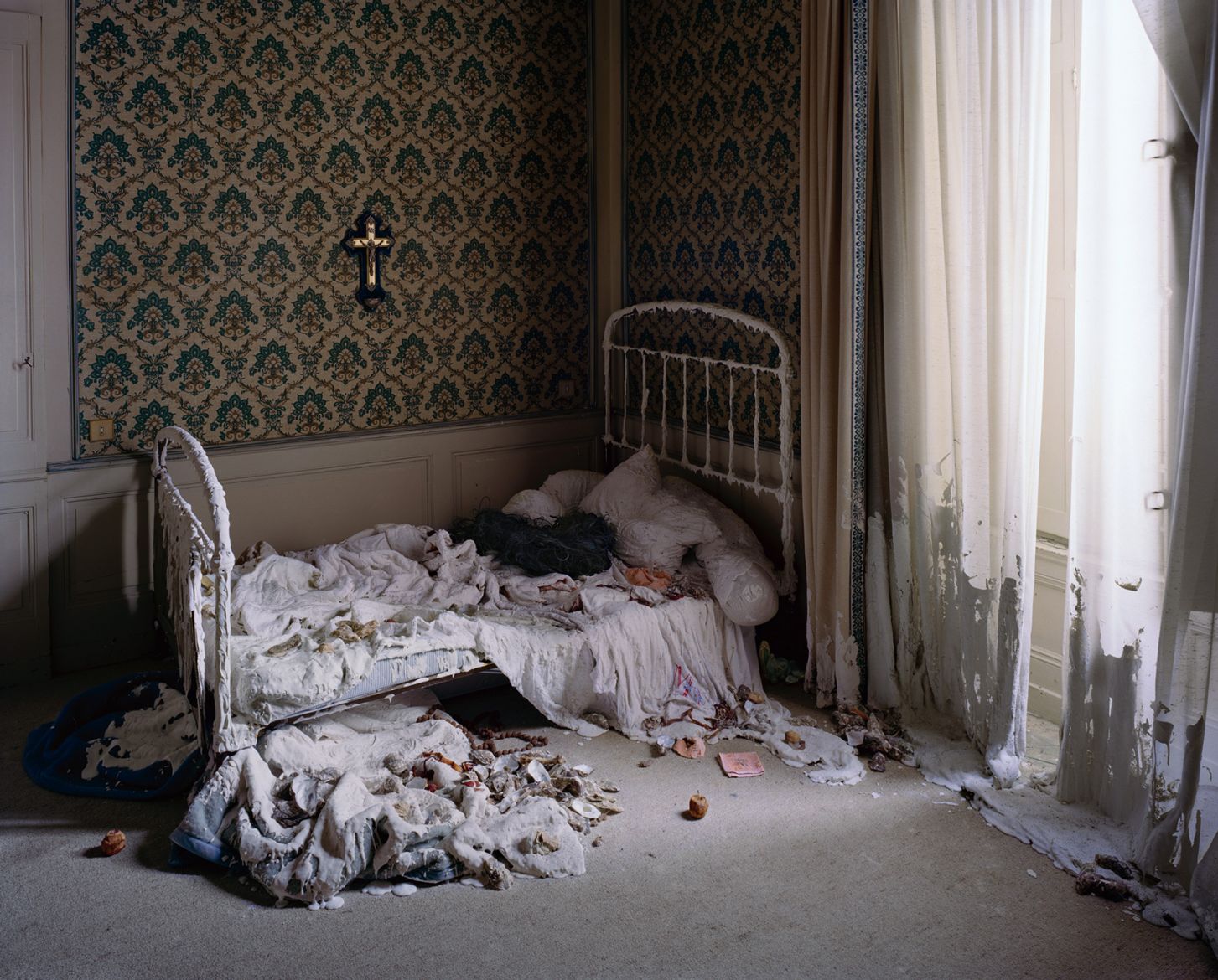 Sous le voile de la chambre, organisant des événements fictifs pour rassembler sa propre famille, l'artiste met en scène ses parents, ses proches, elle-même, dans des clichés qui reprennent les évènements clés qui rythment l'histoire d'une cellule familiale : baptême, mariage, réunions, décès... Ce sont des scènes soigneusement organisées, prenant place dans de lourds décors confinés, où chaque objet, la pose de chaque personnage est symbolique dans un univers familier développant son propre système de croyances et de rituels. Se crée alors un groupe, en marge de la réalité, lui permettant d'en inventer l'organisation portée par ses rites, ses codes, ses croyances et ses dysfonctionnements.