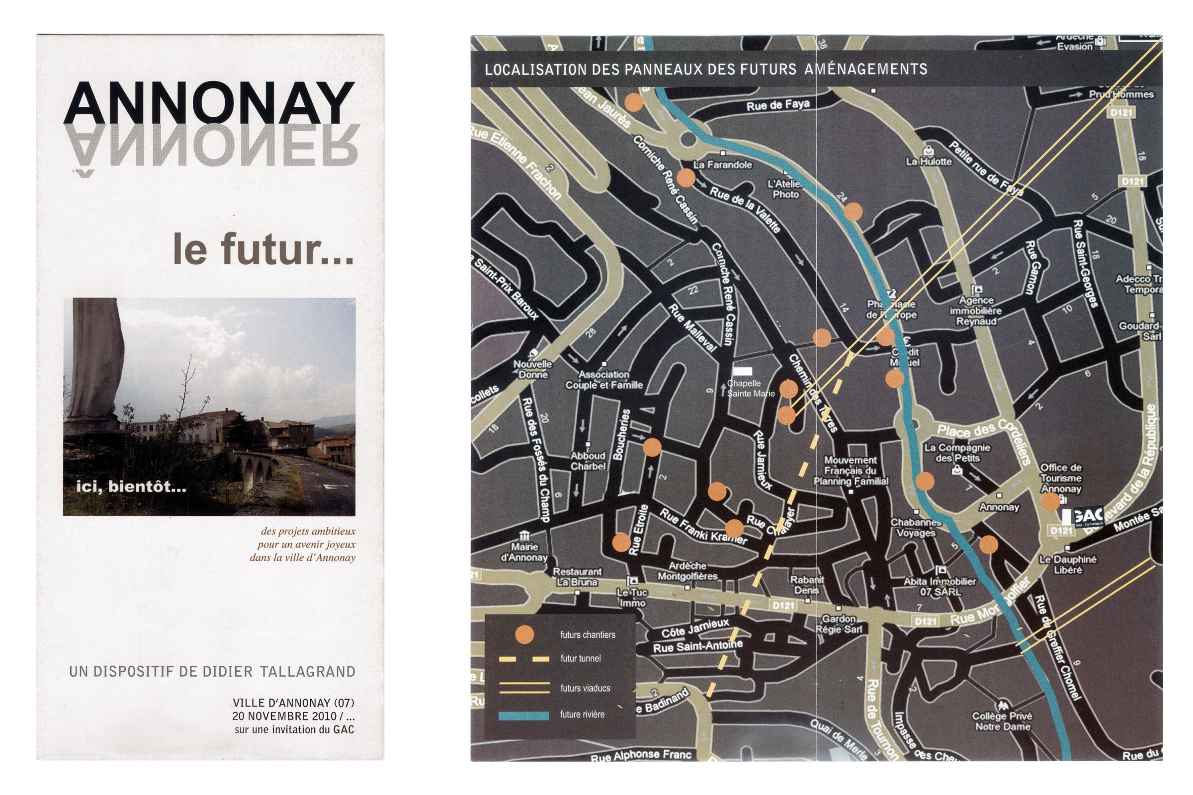 15 panneaux ont été implantés de novembre 2010 à juillet 2011 dans le centre-ville d’Annonay, petite bourgade de 18000 habitants, située au nord de l’Ardèche. La dimension de chaque panneau est de 80 x 100 cm.