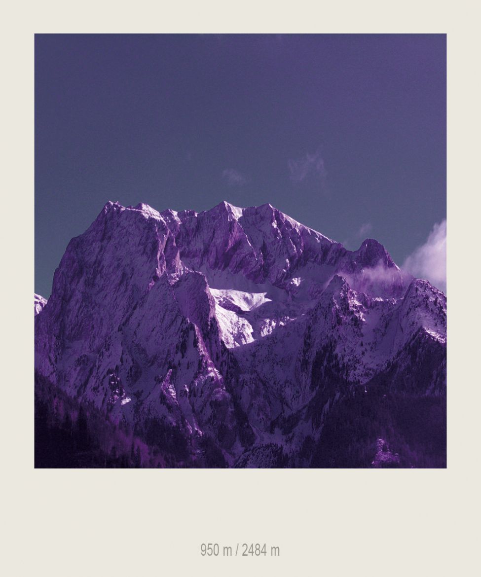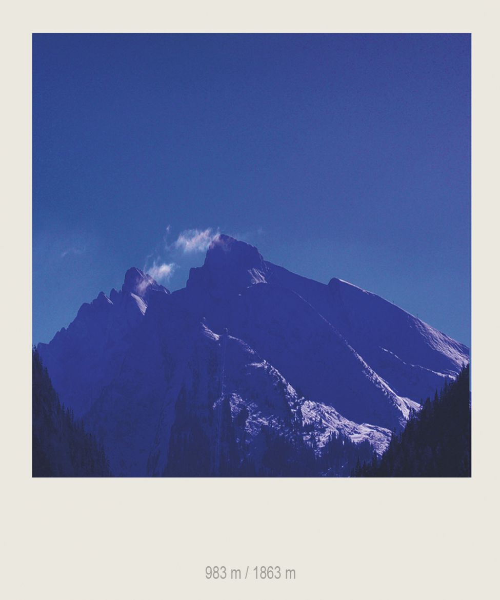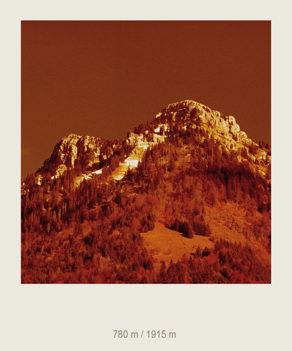 Le dépliant sera distribué dans tous les offices de tourisme de la région, invitant le visiteur à pratiquer l'expérience de ces états physiques. Des clichés polaroïds des neuf sommets seront exposés au public durant toute la saison, comme indices colorés de la réalité topographique régionale.