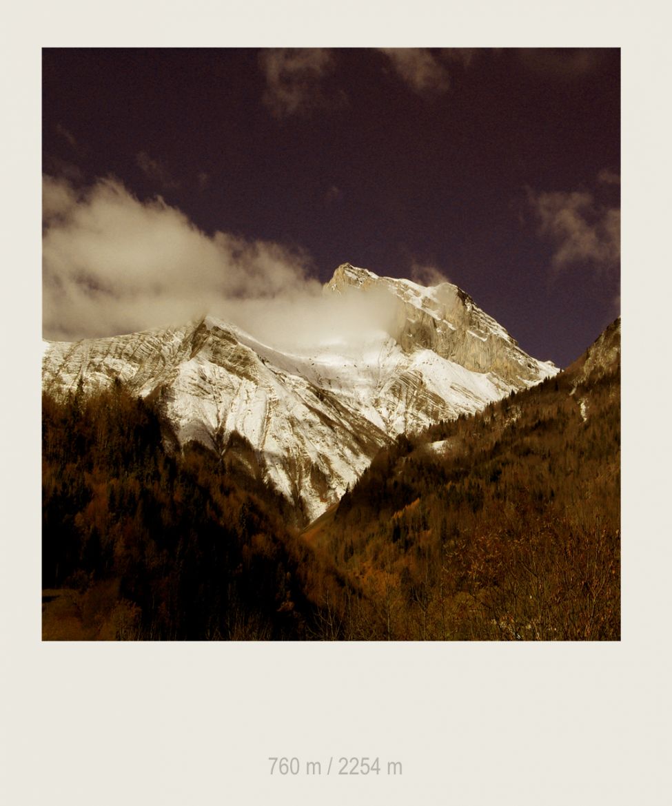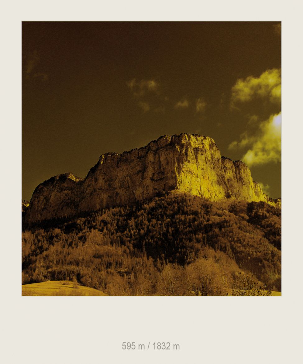 Dominée par de hauts sommets, la région offre une palette colorée éclatante. Ce parcours en 9 étapes propose d'observer avec attention les gammes chromatiques élevées, pour une découverte des nuances dominantes de la hauteur. À l'aide de ce dépliant et du privilège de sa verticalité, chacun pourra colorer l'altitude et augmenter la densité gazeuse qui produit la couleur, depuis la place du village. Un itinéraire esthétique pour un regard sublimé, une aspiration vers les hauteurs qui nous dominent, à expérimenter de la place des neuf sites dominés.