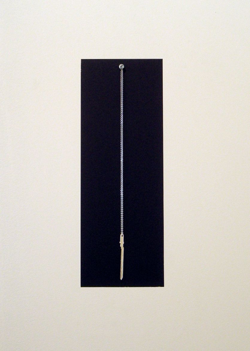 Avec des si je coupe du bois, par cette phrase en forme de manifeste, Émilie Perotto désigne un ensemble sculptural façonné dans le bois de particule. Chaque pièce subit un traitement spécifique, une suite de gestes aboutissant à des formes réalistes ou bien résiduelles. Dans une telle pratique, l'outil prépondérant excède sa seule valeur pratique. Il est fondamentalement lié à l'œuvre in progress. Logique donc, que l'artiste lui porte un regard attentif et qu'elle n'hésite pas à le décliner comme pictogramme ornant les pages de son catalogue ou comme multiple - un pendentif en argent, moulage d'une lame de scie sauteuse. Toute sacralisation mise à part, il s'agit de réinjecter l'outil dans le projet artistique et d'en éprouver le caractère fétiche, déstabilisant ainsi les conventions liées à l'épreuve de la sculpture.