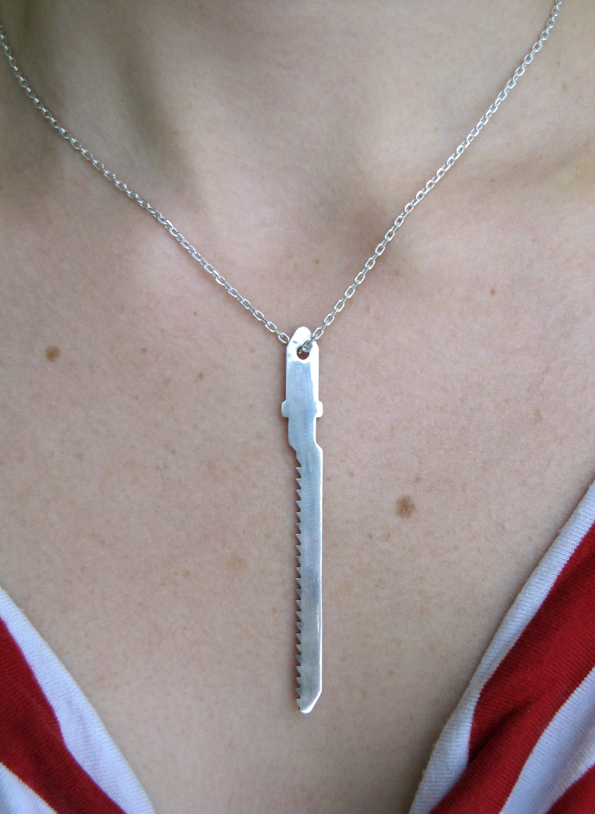 Pendentif en argent massif 73 x 8 x 1 mm, chaîne en argent de 60 cm