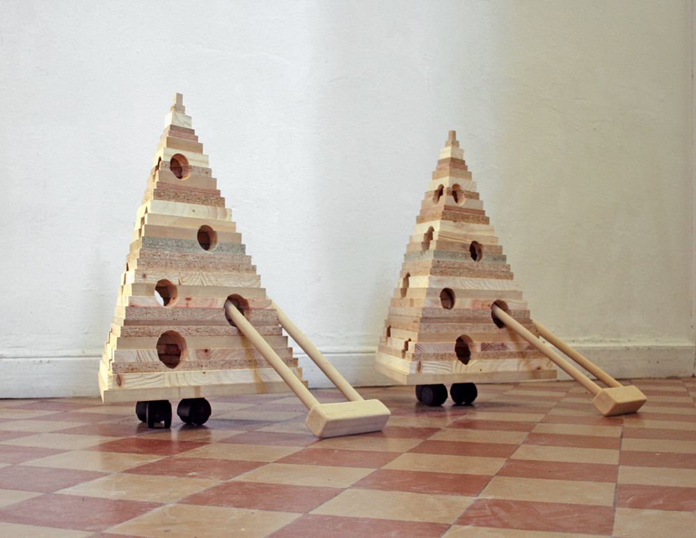 Roulettes, bois médium, contreplaqué, aggloméré, mélaminé, pin, 62 x 68 x 65 cm