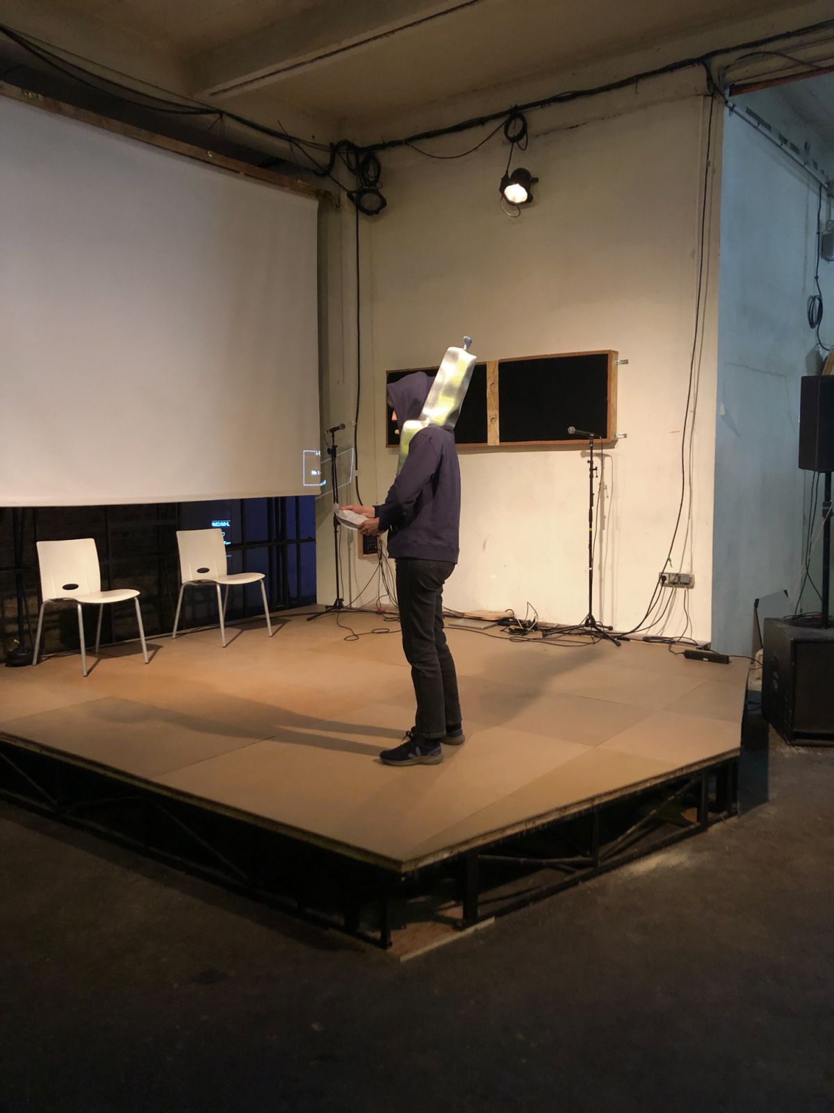 La Sculpture pour 2 chaises ou 1 épaule prend parfois la parole. Une fois installée sur mon épaule, je lui prête ma voix pour la lecture performée du récit sensible de sa matérialisation.