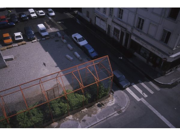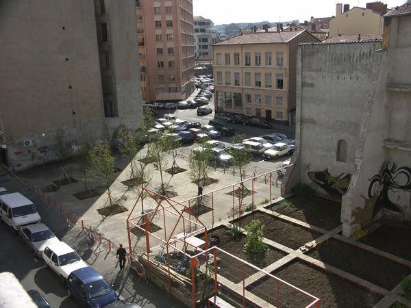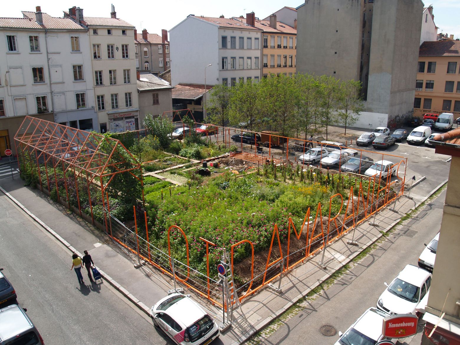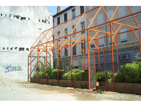La Galerie Tator, dans le cadre des "politiques de la ville", invite l'artiste Emmanuel Louisgrand à créer un jardin éphémère à l'angle des rues Sébastien Gryphe et Montesquieu, à l'emplacement même d'un parking sauvage. 2003 sera donc l'année de la création d'une serre, telle un havre végétal abritant plusieurs variétés d'une même plante, l'amarante, et arborant une armature métallique orange, signature artistique de son concepteur.