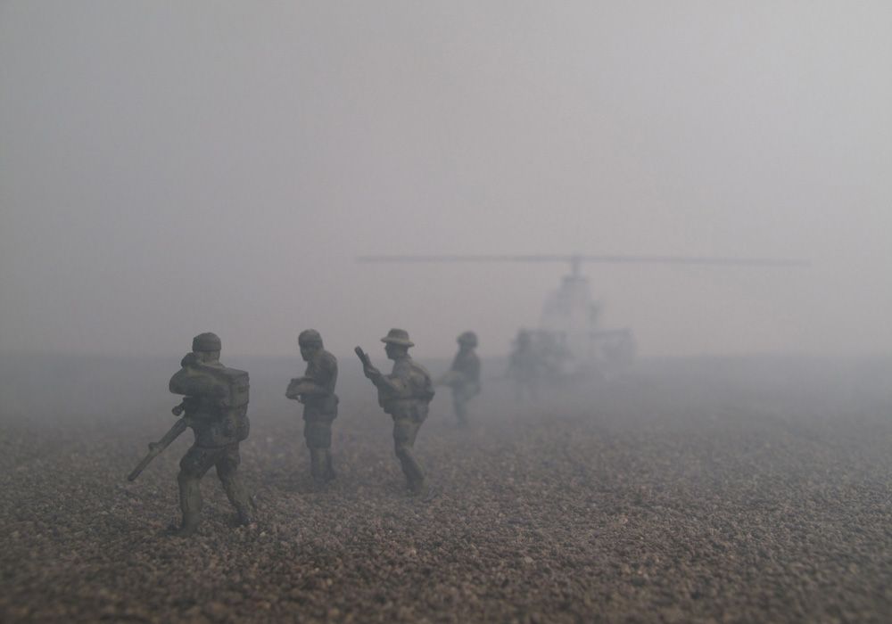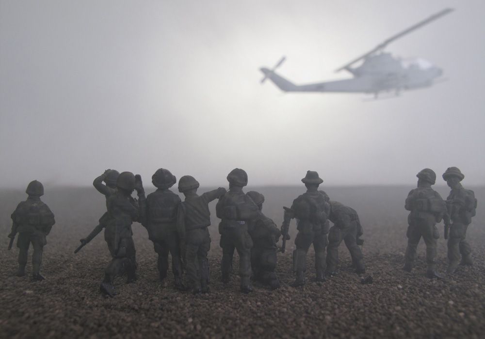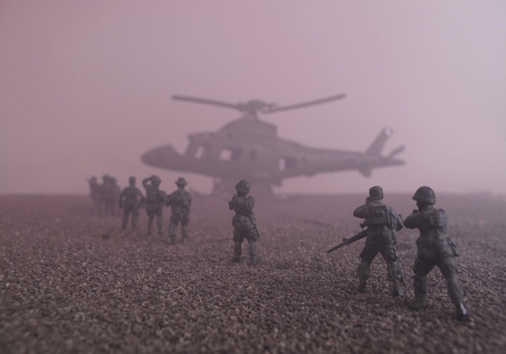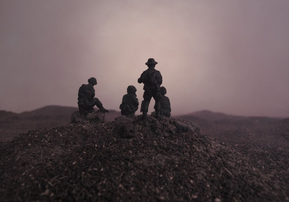 Ce projet propose, à travers la reconstitution en maquette, de remettre en scène des images liées à la guerre en Afghanistan. La première série, de grand format, retranscrit des images de soldats montrées dans la presse en illustration des articles sur la guerre. Elles mettent en scène une imagerie fantasmée voire romantique de la guerre. À travers le contexte, les cadrages et la lumière, elles jouent sur notre inconscient collectif marqué par le cinéma. Les reproduire en maquette leur apporte une part de fragilité et de dérisoire inexistante dans les images d'origine.