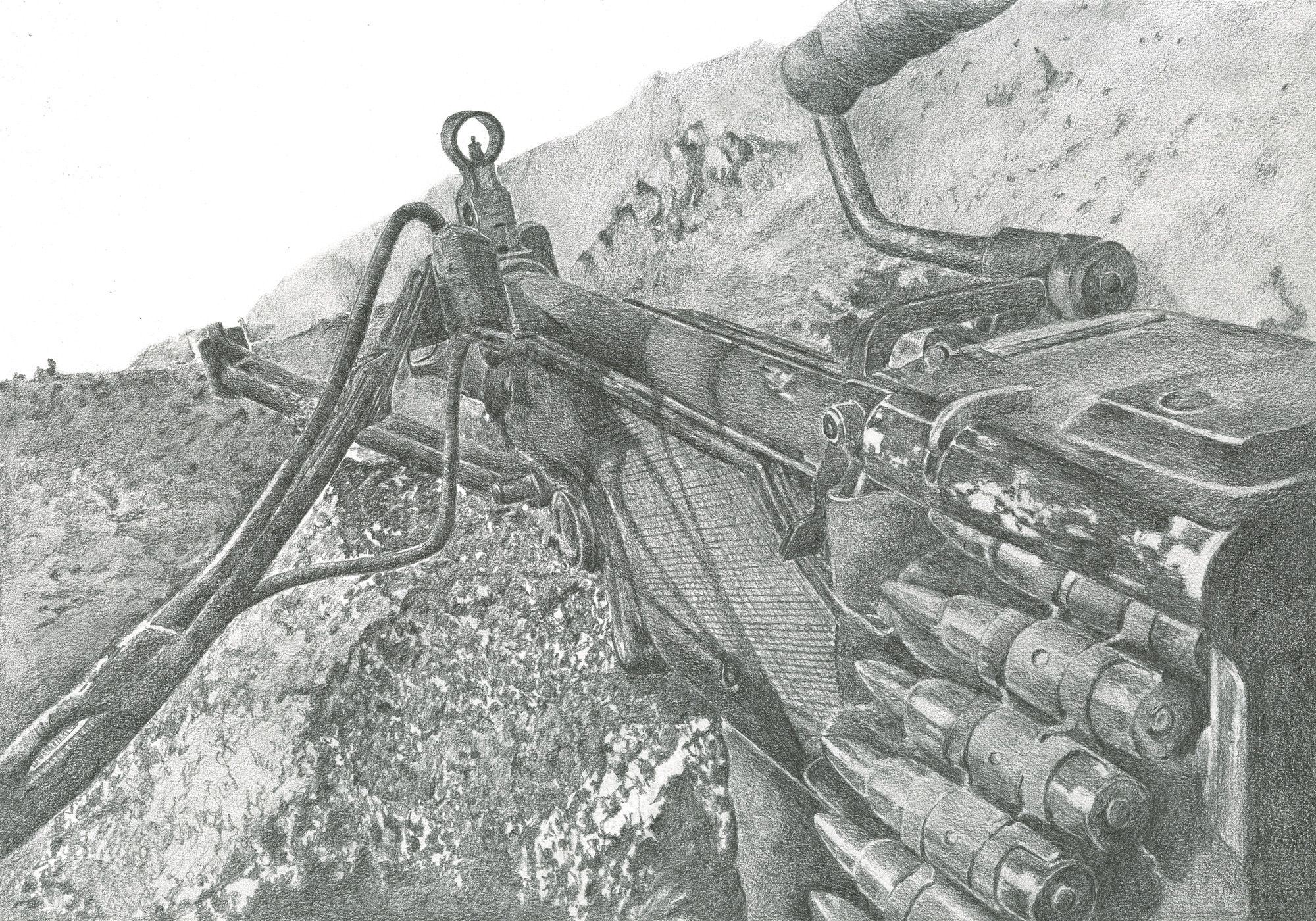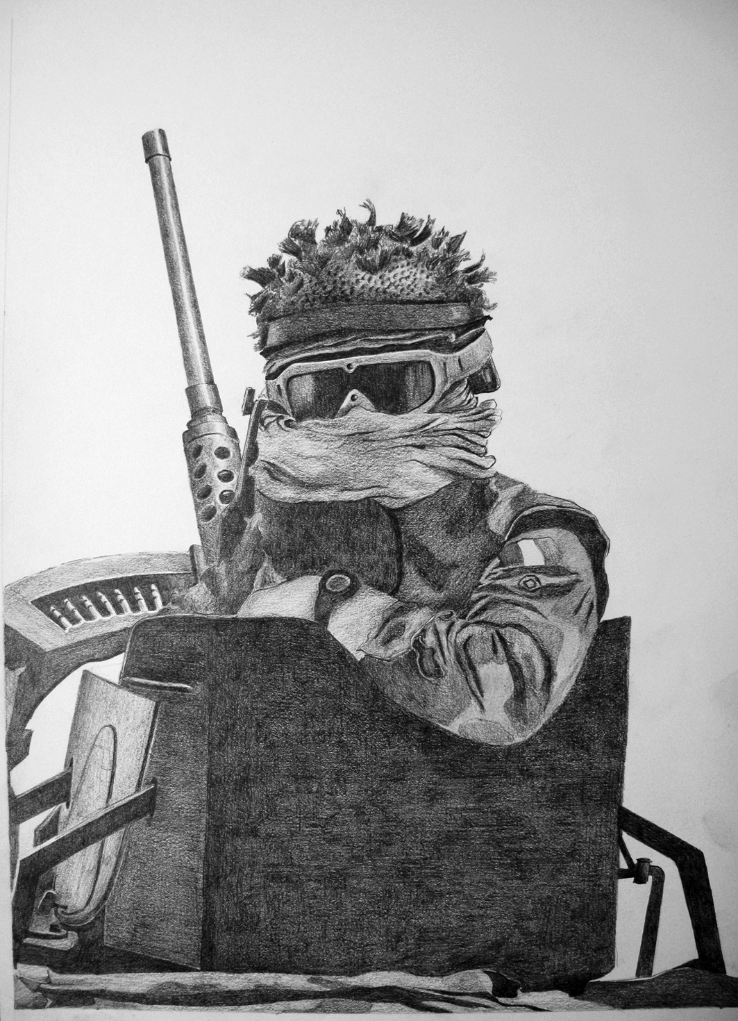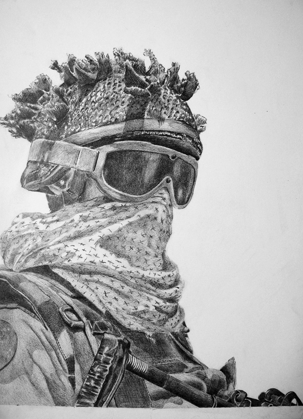 Deux séries de dessins accompagnent ce projet, trois portraits de soldats camouflés pour le désert et treize dessins d'après les photographies privées d'un soldat français en poste en Afghanistan en 2008.