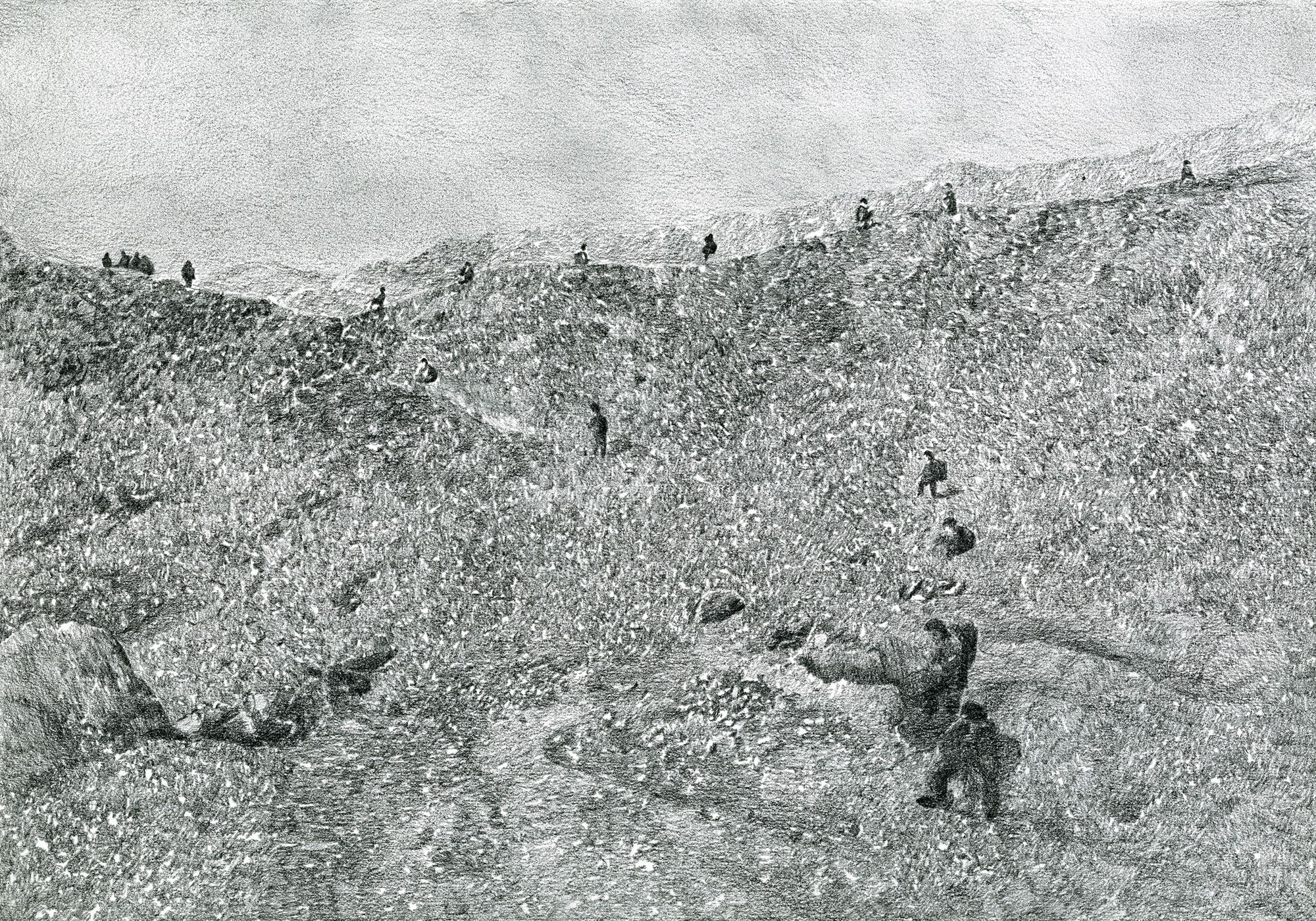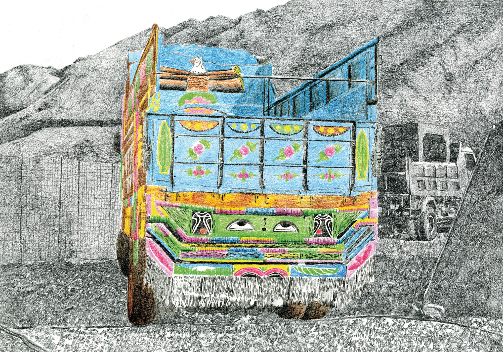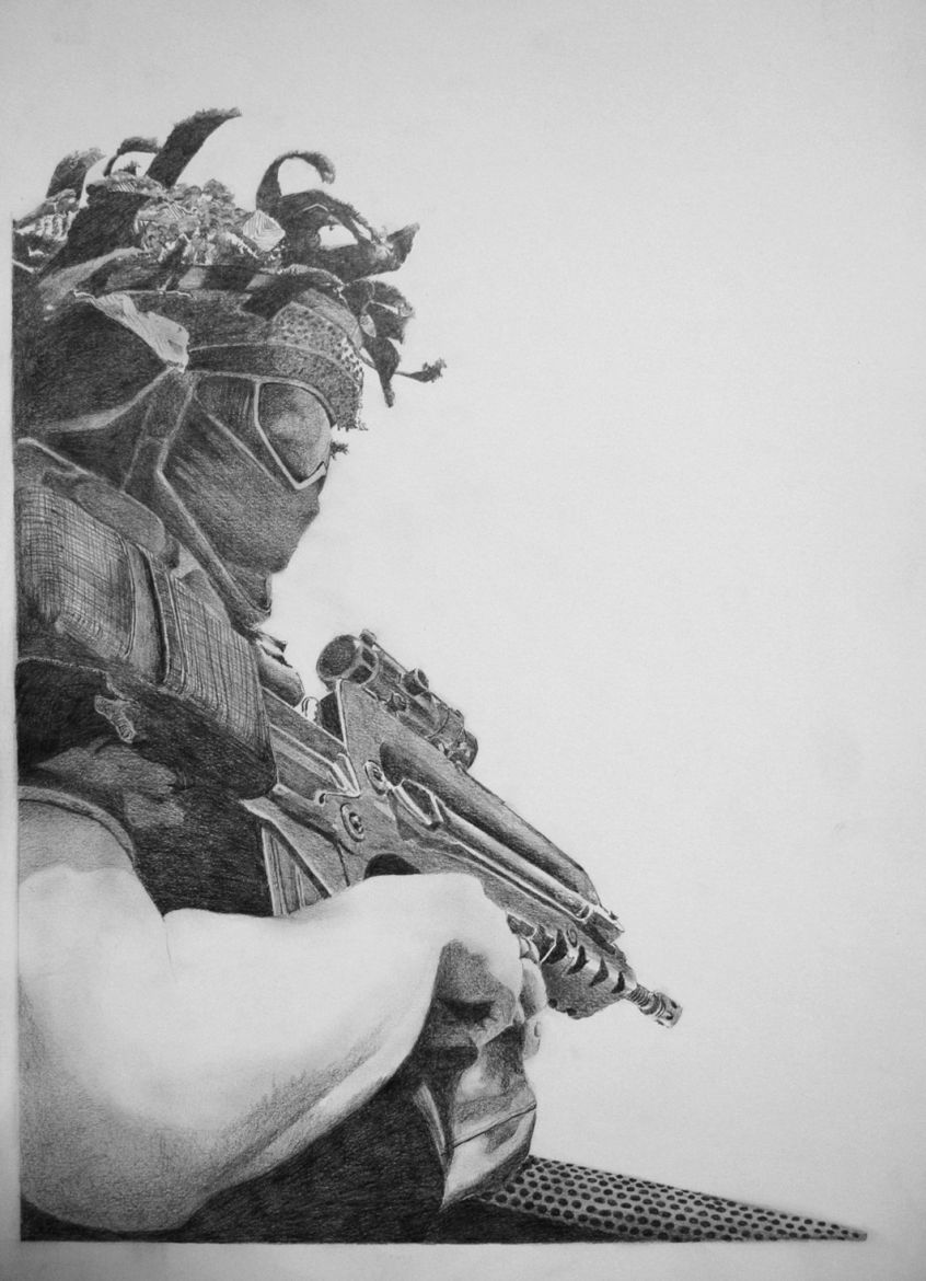 Deux séries de dessins accompagnent ce projet, trois portraits de soldats camouflés pour le désert et treize dessins d'après les photographies privées d'un soldat français en poste en Afghanistan en 2008.