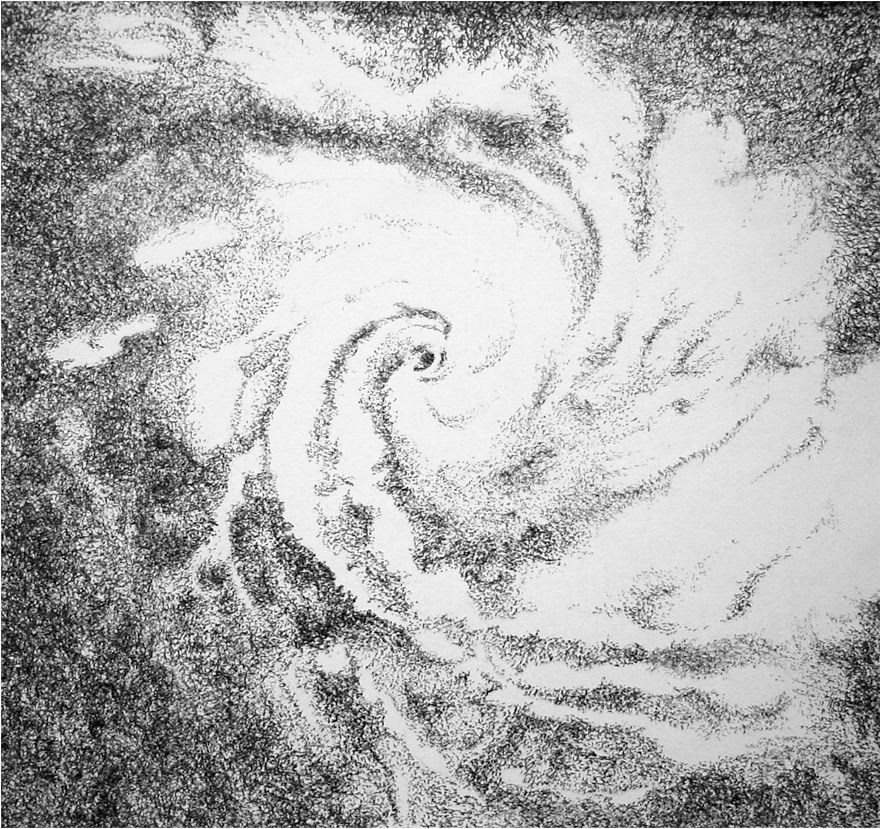 5 dessins, stylo bille sur papier, 30 x 28 cm