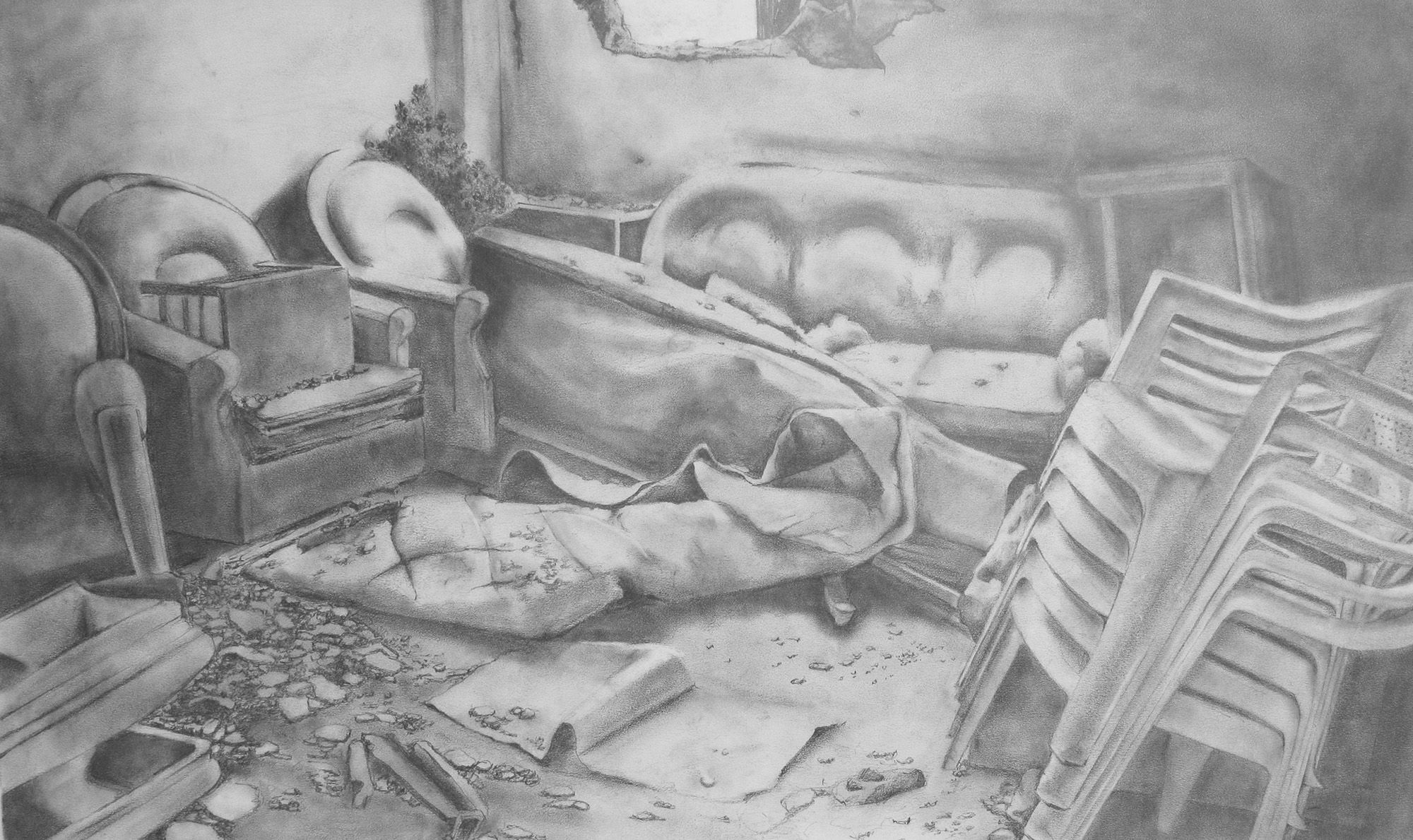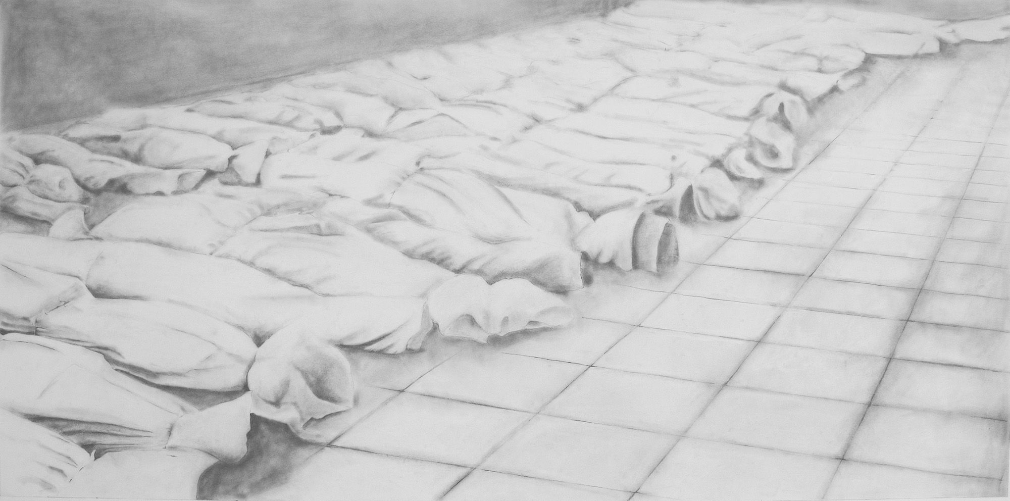 Dessins, mine de graphite sur papier, 100 x 200 cm ; 75 x 110 cm