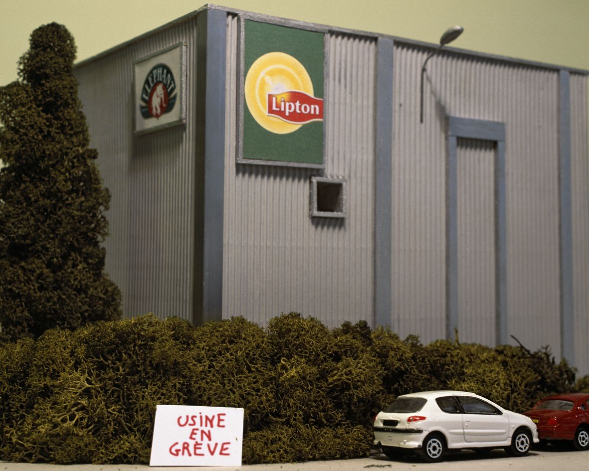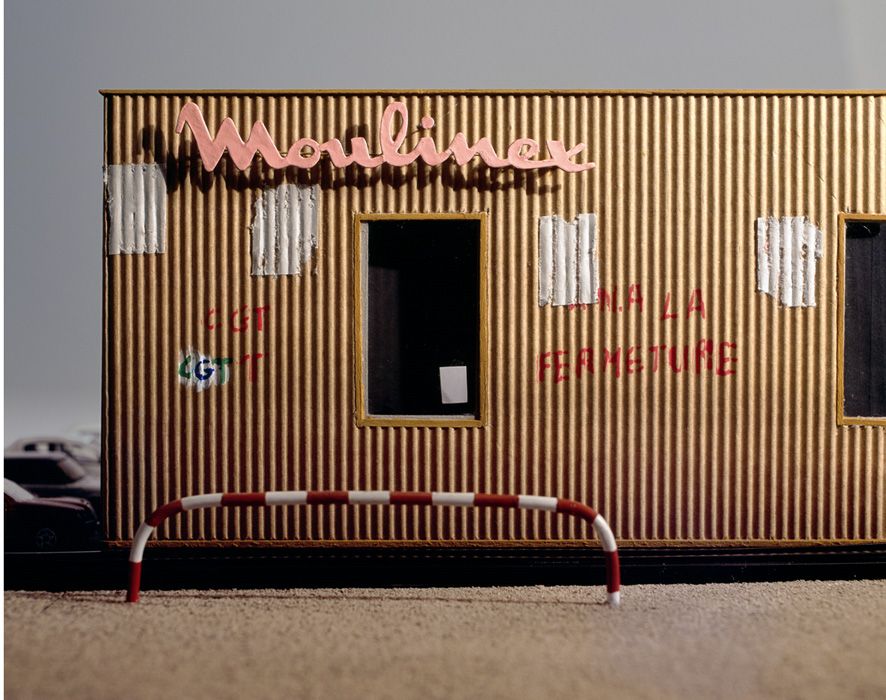 Dans cette exposition, Fabienne Ballandras nous propose sept photographies. La lecture première de cette série semble d'une déroutante évidence : toutes reproduisent le plus fidèlement possible – plus encore que ses travaux précédents – des images d'actualité ayant illustré des affaires ou des événements précis de la vie économique et industrielle de notre pays. Nul besoin pourtant de se remémorer très exactement la fermeture de l'usine Moulinex de Cormelles-le-Royal et de Daewoo en Lorraine, la remise en cause des trente cinq heures par Bosch, les tout récents licenciements et délit d'initiés d'EADS, la fusion d'Alcatel et de Lucent, etc. Ces images ont tant circulé dans les médias (télévision, presse, Internet) qu'elles en deviennent génériques, voire tristement interchangeables, symptômes d'un fonctionnement économique déterminé par la mondialisation de la production et la toute-puissance des actionnaires.