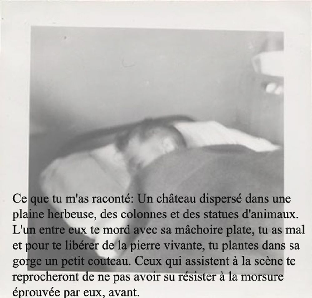 Souvenir(s) il y a venir est un ensemble agencé d’images collectées et de textes courts, prenant la forme de photogrammes inventés et noués en fragments de conversations mémorielles. Comme les Diégèses, Diaphanes, Archéologies de papier, elles peuvent être présentées en édition comme en exposition.