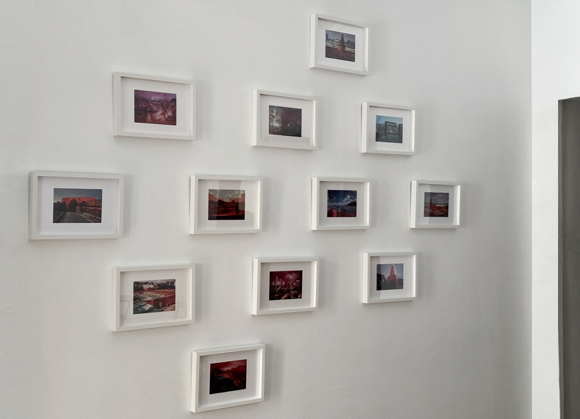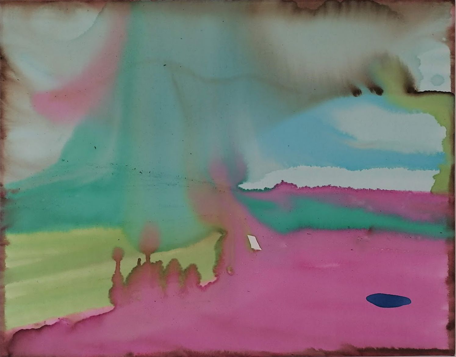 De cette matière composite, Frédéric Khodja en a tiré Icilà, une installation qui poursuit l’exploration de ses fictions géographiques en mettant en présence deux formes d’expression aux relations aussi houleuses que fécondes : d’un côté la peinture, de l’autre la photographie, ici des encres sur toile intitulées « paysages périphériques », là une succession de quatre-vingts « diaphanes », chacun créé par la juxtaposition de deux diapositives trouvées.