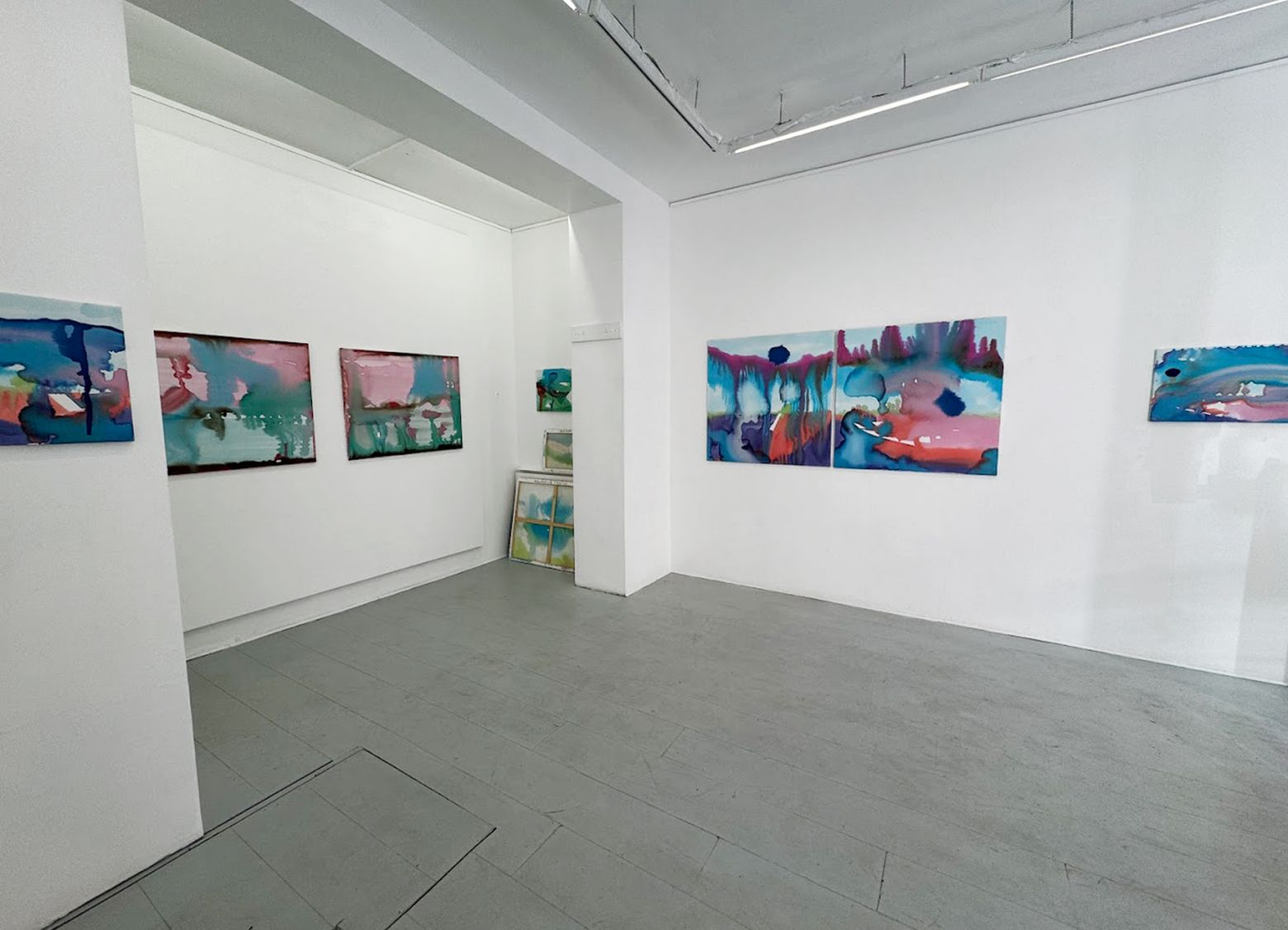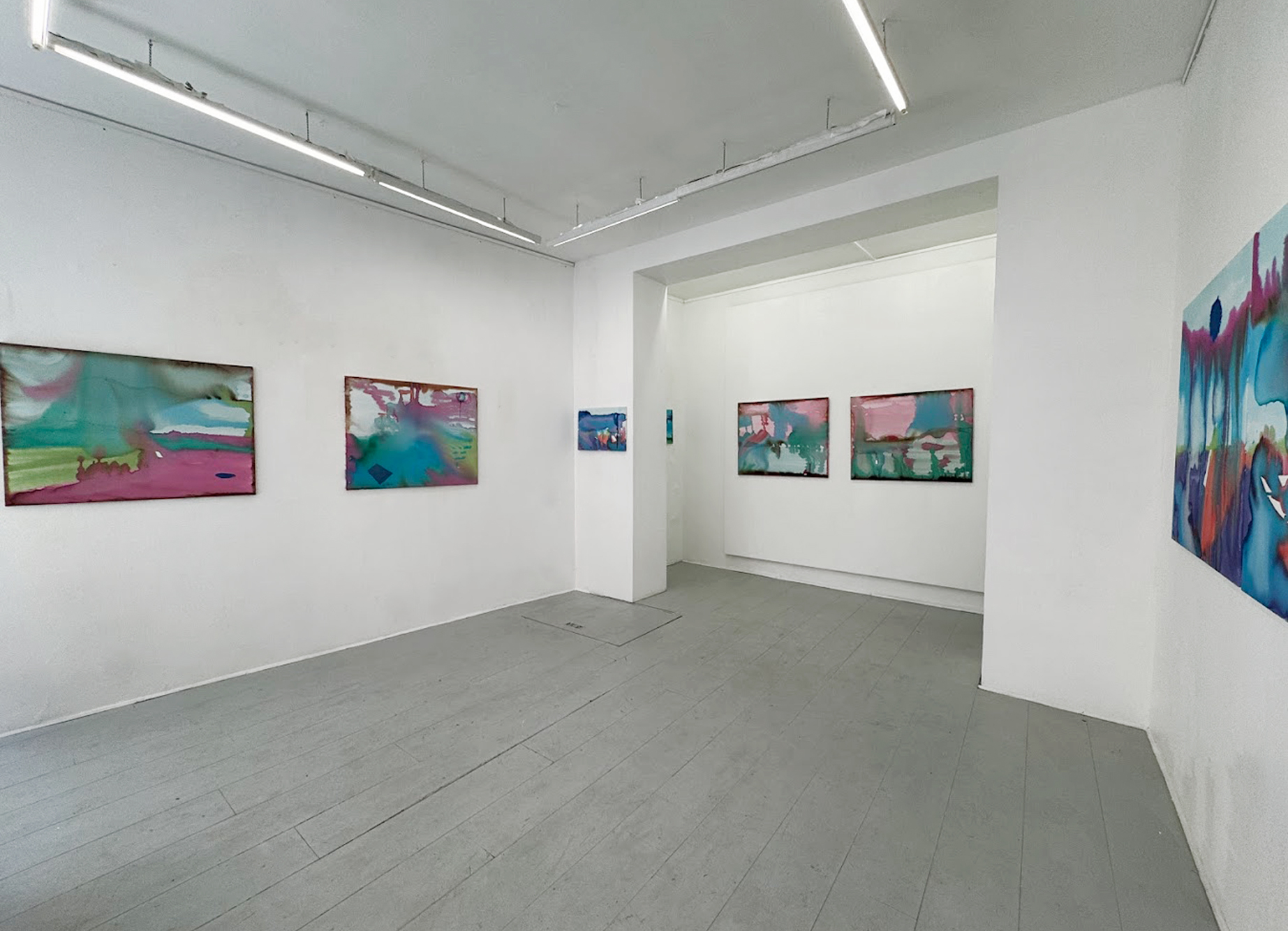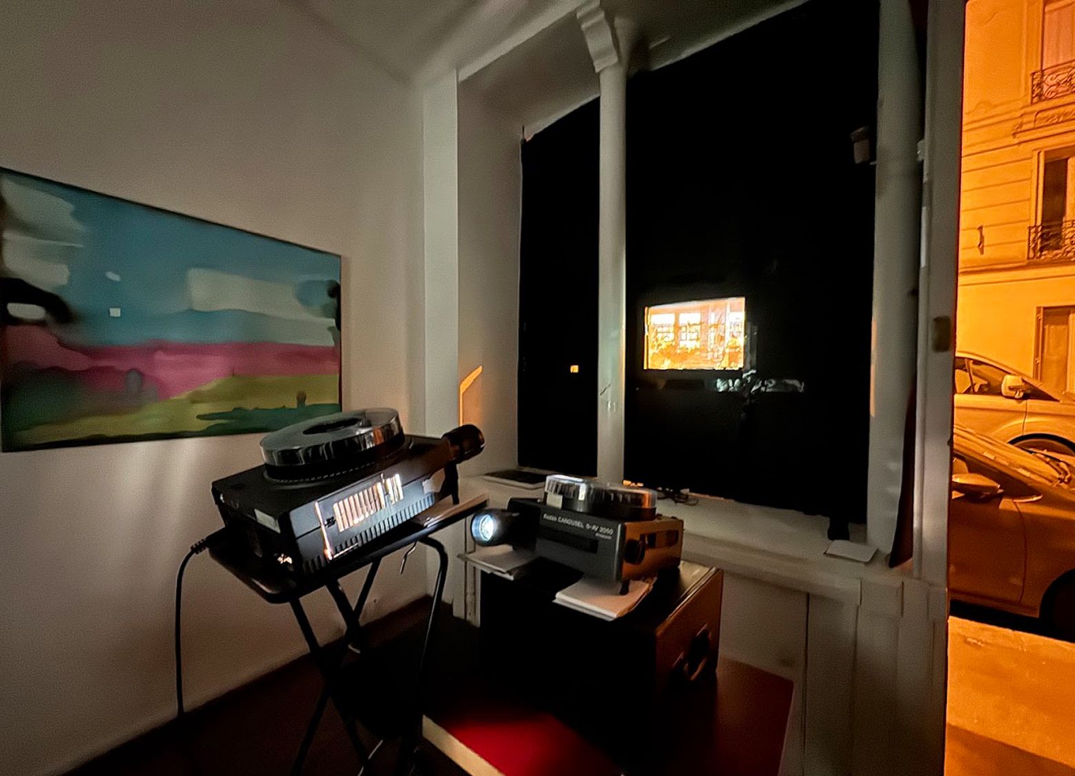 Ces collusions esthétiques, temporelles et géographiques ouvrent de nouvelles zones : un espace de contemplation pour les tableaux, jouant sur la capacité et le temps de l’œil à s’habituer à une vision toujours changeante, comme lorsqu’on cherche à voir à travers une vitre battue par le vent ou les essuie-glaces, oscillant entre composition et recomposition ; un espace de projection, inspiré des soirées diapo, où se brouillent les repères pour laisser affleurer des nappes de mémoire qui débordent le simple souvenir.