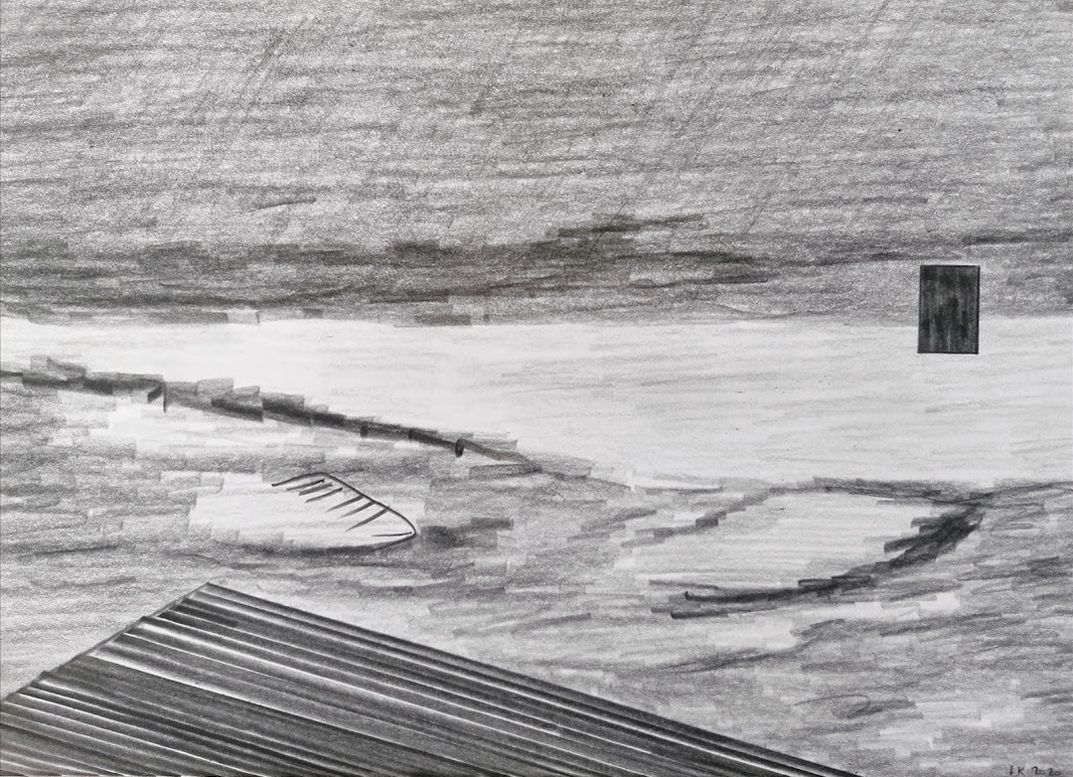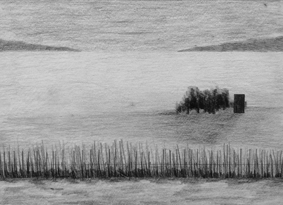 Crayon de couleur et mine graphite sur papier, 21 x 29,7 cm