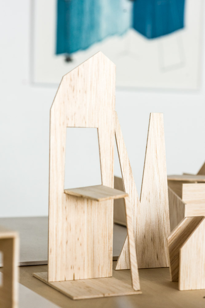 Volumes, contreplaqué et peinture vinylique, dimensions variables