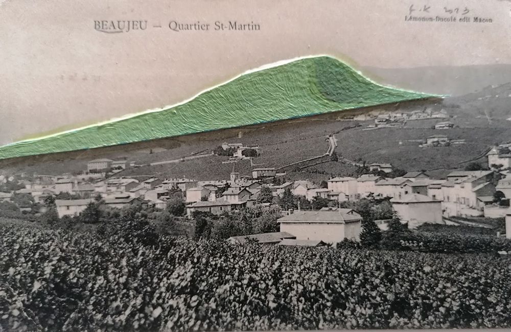 « Frédéric Khodja joue avec les images et la représentation. Il décortique la façon dont nous composons, regardons, analysons. Dans les musées, l’image est une matière scientifique à traiter avec précaution car loin d’être toujours objective. Que représenter et comment quand il s’agit de mémoire collective ? Cette question résonne avec la démarche de l’artiste, qui mène une enquête mentale et visuelle à partir de cartes postales détournées, de paysages recomposés et d’images projetées. Il souligne que notre mémoire des lieux et des paysages ne se limite pas à une vue unique. Elle véhicule autant de souvenirs et d’impressions qu’il existe des personnalités différentes. La somme de ces univers individuels prend forme dans le musée, qui matérialise ainsi la fabrique collective d’une mémoire et d’un patrimoine commun. "Il ne s’agit pas seulement de traiter du souvenir mais de traiter de ce qui anime, de ce qui met en mouvement. » [...]