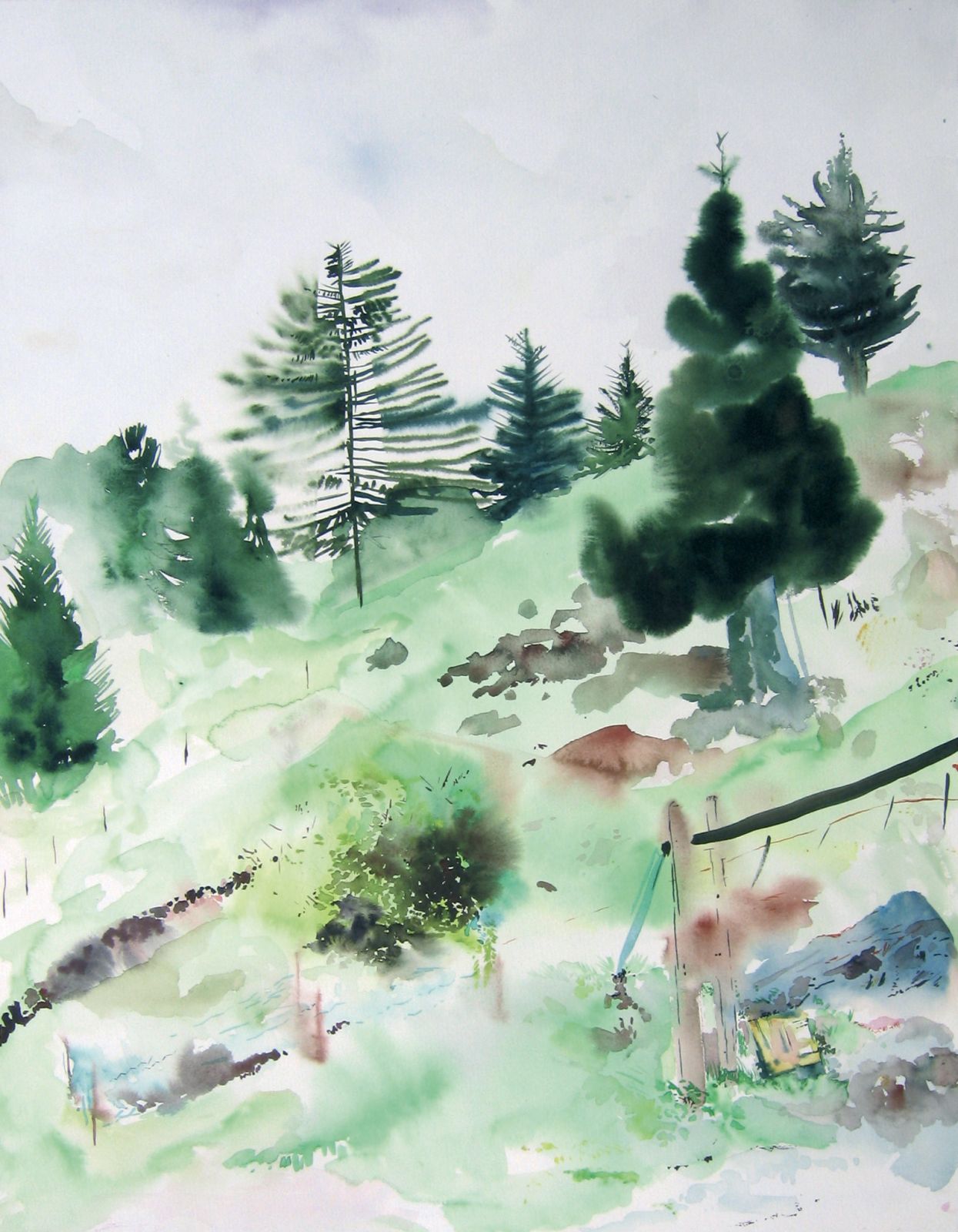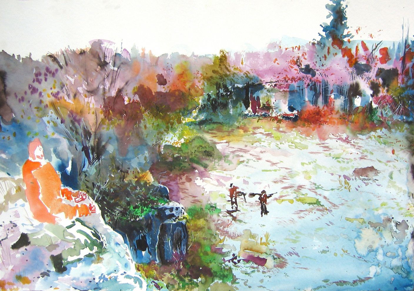 Stylo et aquarelle sur papier, 50 x 65 cm