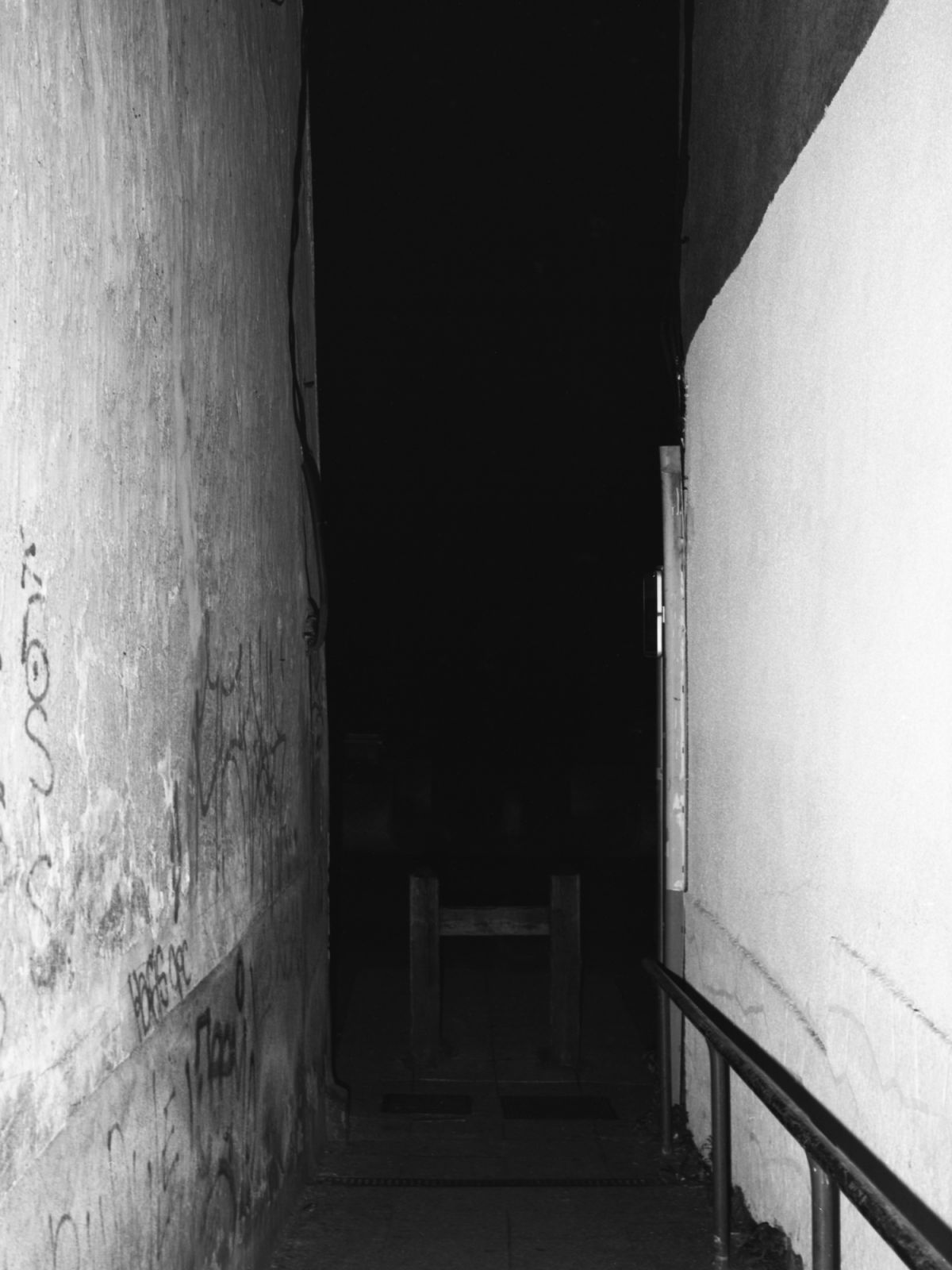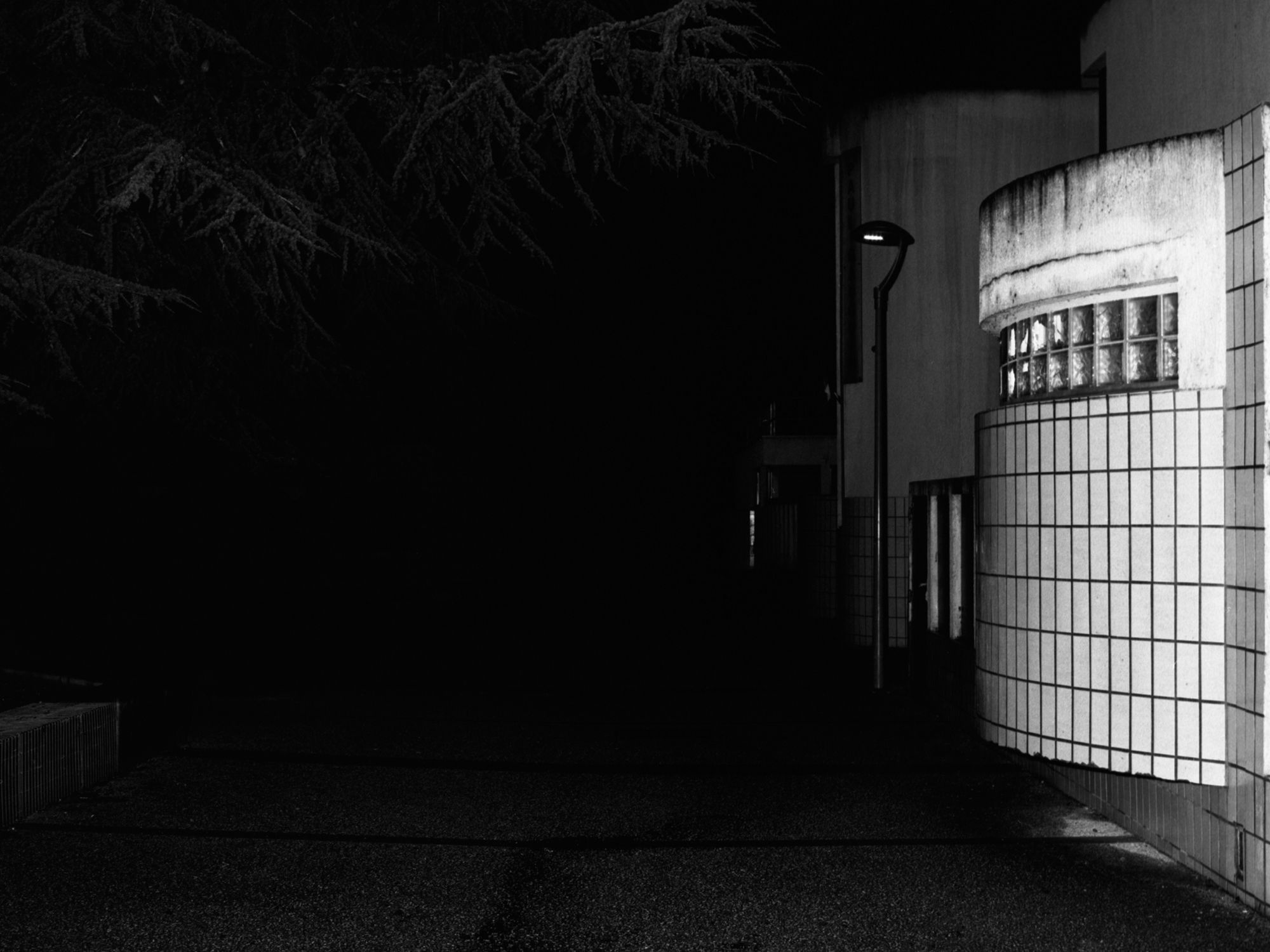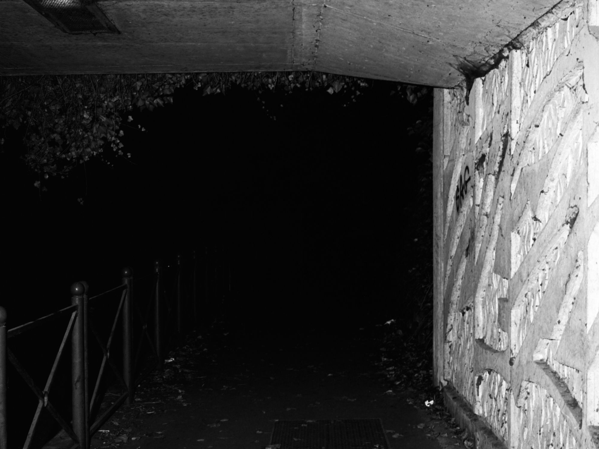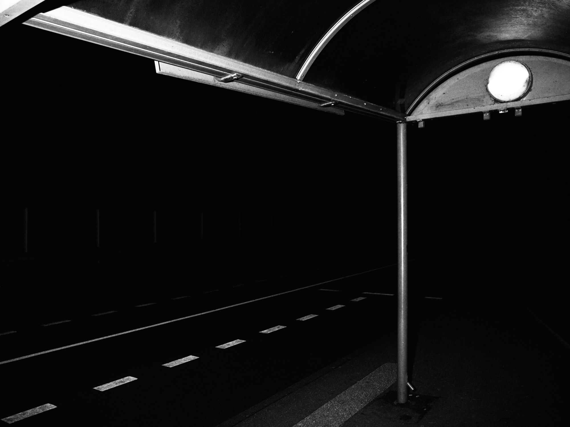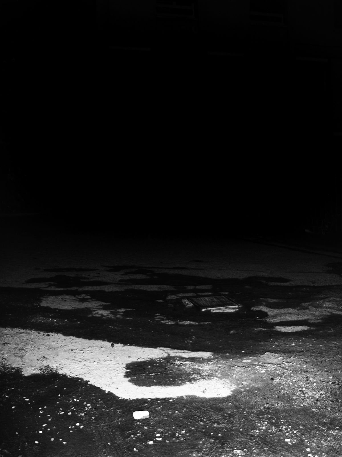 Le projet de Karim Kal suit la ligne D du RER, de Grigny à Corbeil. Les photographies, prises de nuit au flash à courte portée, sont à la fois inquiétantes et familières. Car, au-delà de l'étrangeté de l'image qui se présente, nous connaissons intimement ces formes et ces matériaux, ces passages, ces abris, ces raccourcis qui mènent plus vite à la sortie ou au prochain train. Dans le contraste cru du noir et blanc apparaît également la tension entre l'espace collectif et l'espace privé, entre la planification et l'utilisation, entre l'autorité et la transgression.