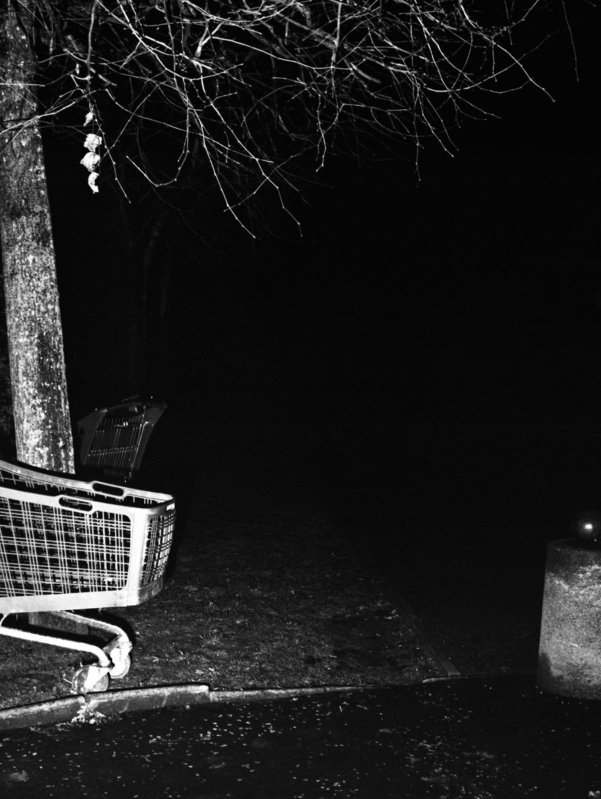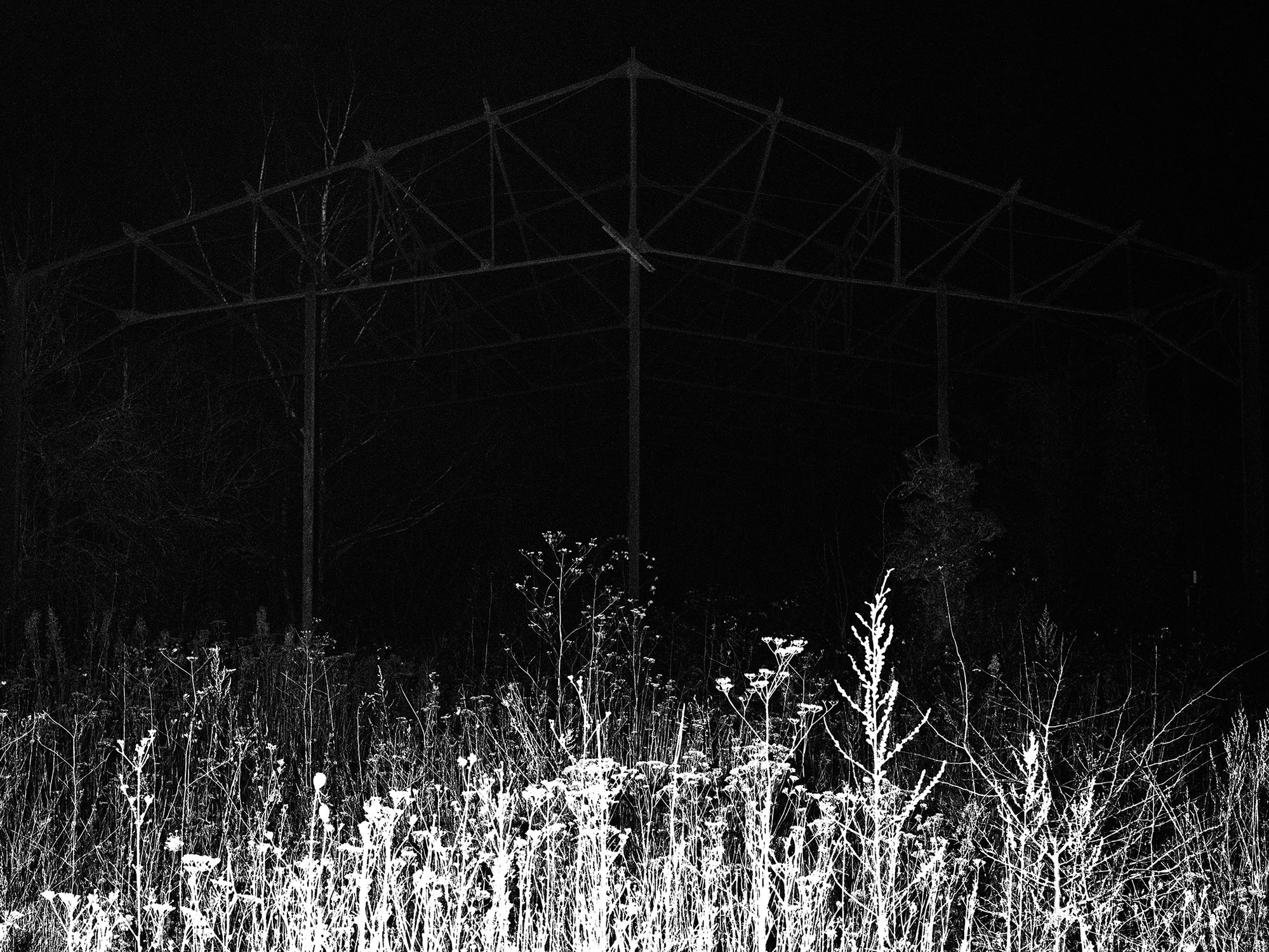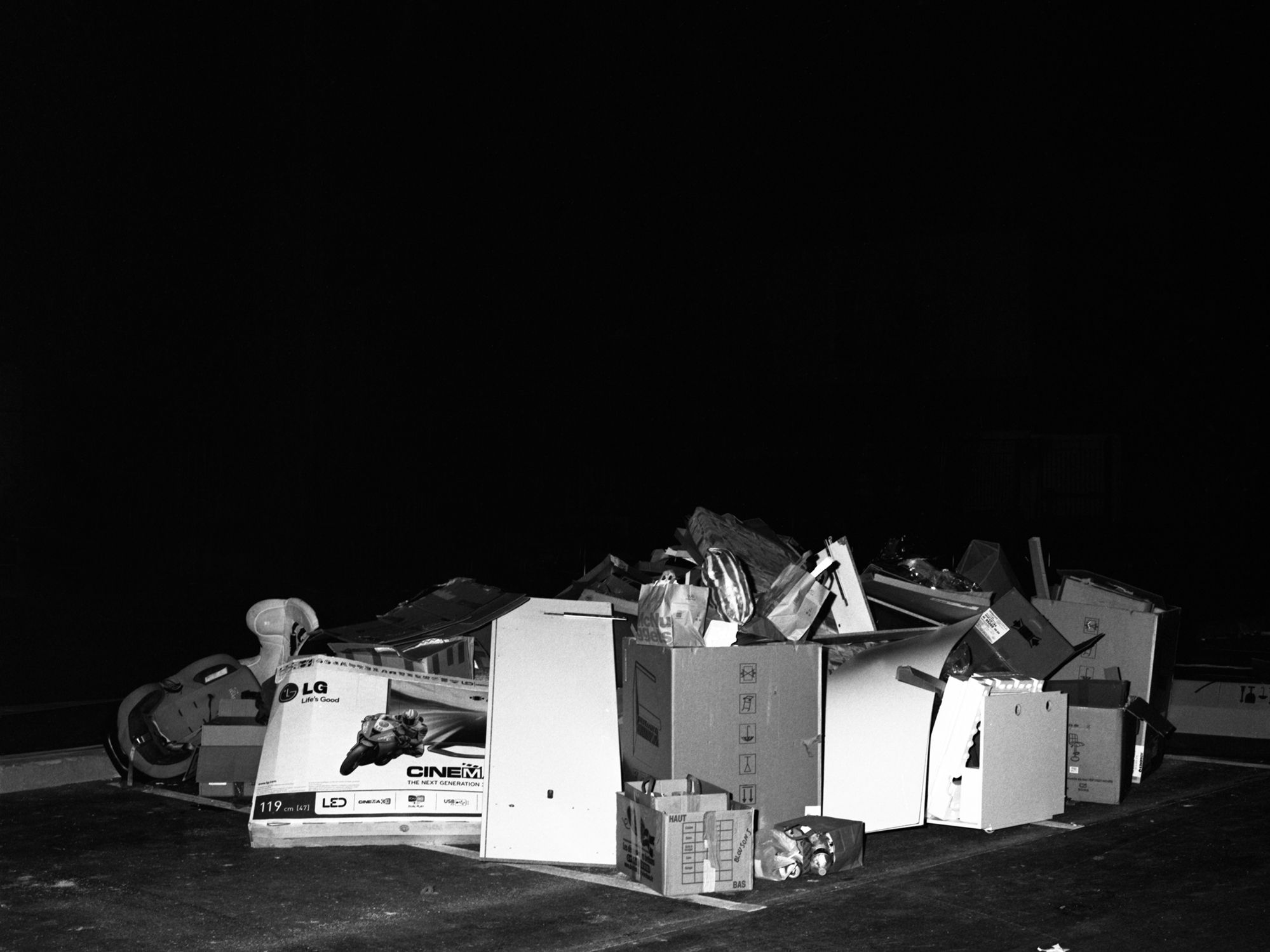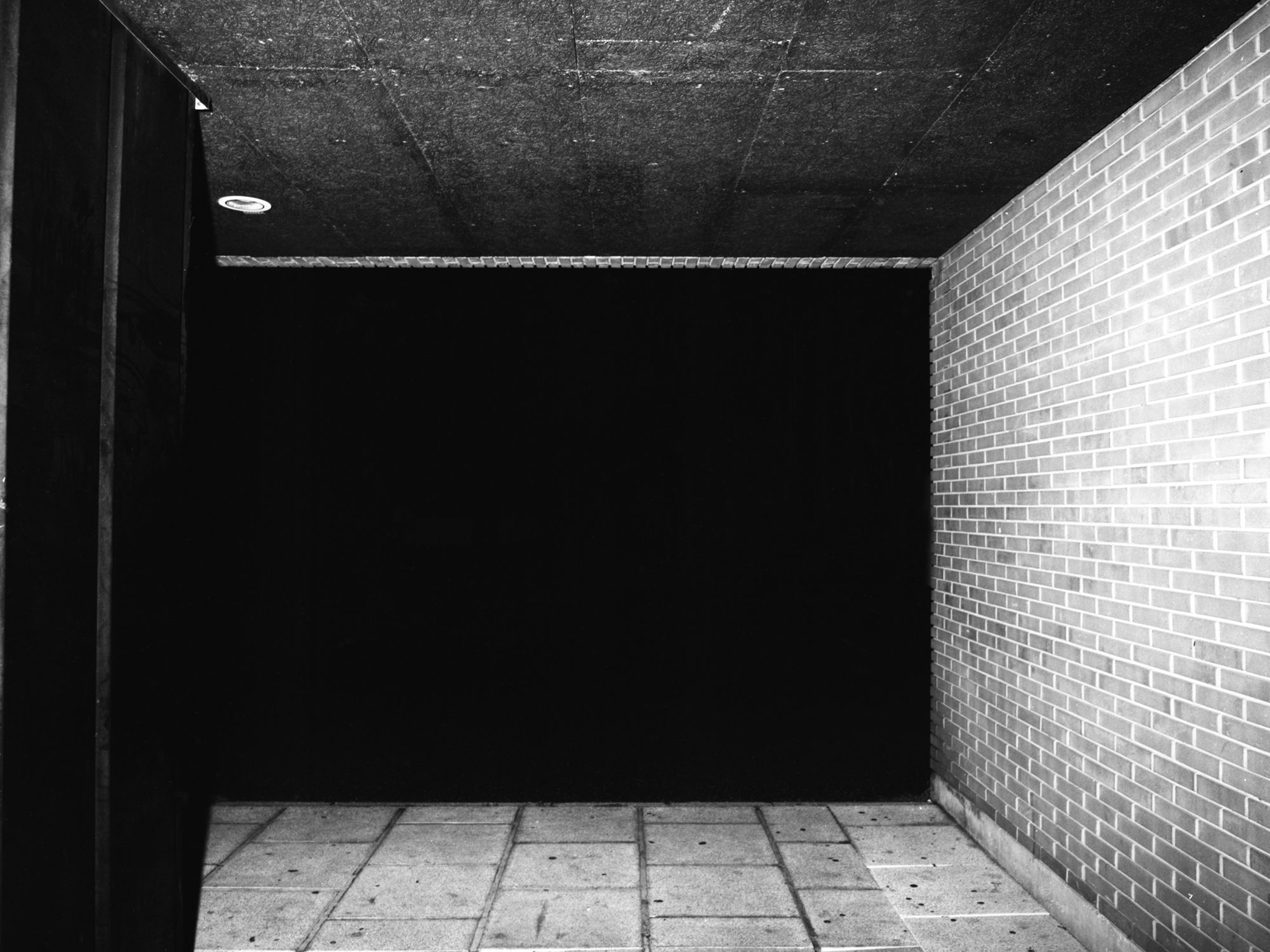 Le projet de Karim Kal suit la ligne D du RER, de Grigny à Corbeil. Les photographies, prises de nuit au flash à courte portée, sont à la fois inquiétantes et familières. Car, au-delà de l'étrangeté de l'image qui se présente, nous connaissons intimement ces formes et ces matériaux, ces passages, ces abris, ces raccourcis qui mènent plus vite à la sortie ou au prochain train. Dans le contraste cru du noir et blanc apparaît également la tension entre l'espace collectif et l'espace privé, entre la planification et l'utilisation, entre l'autorité et la transgression.