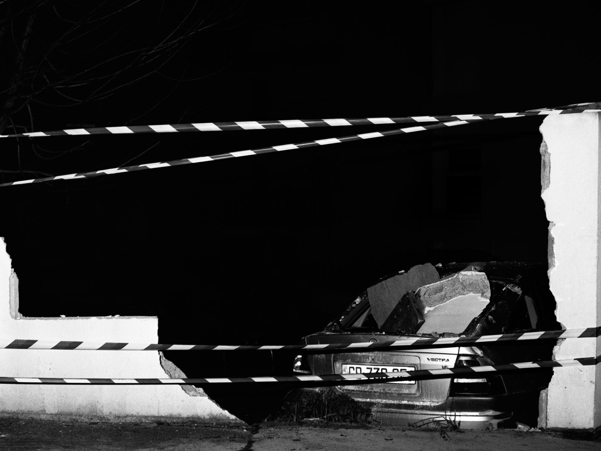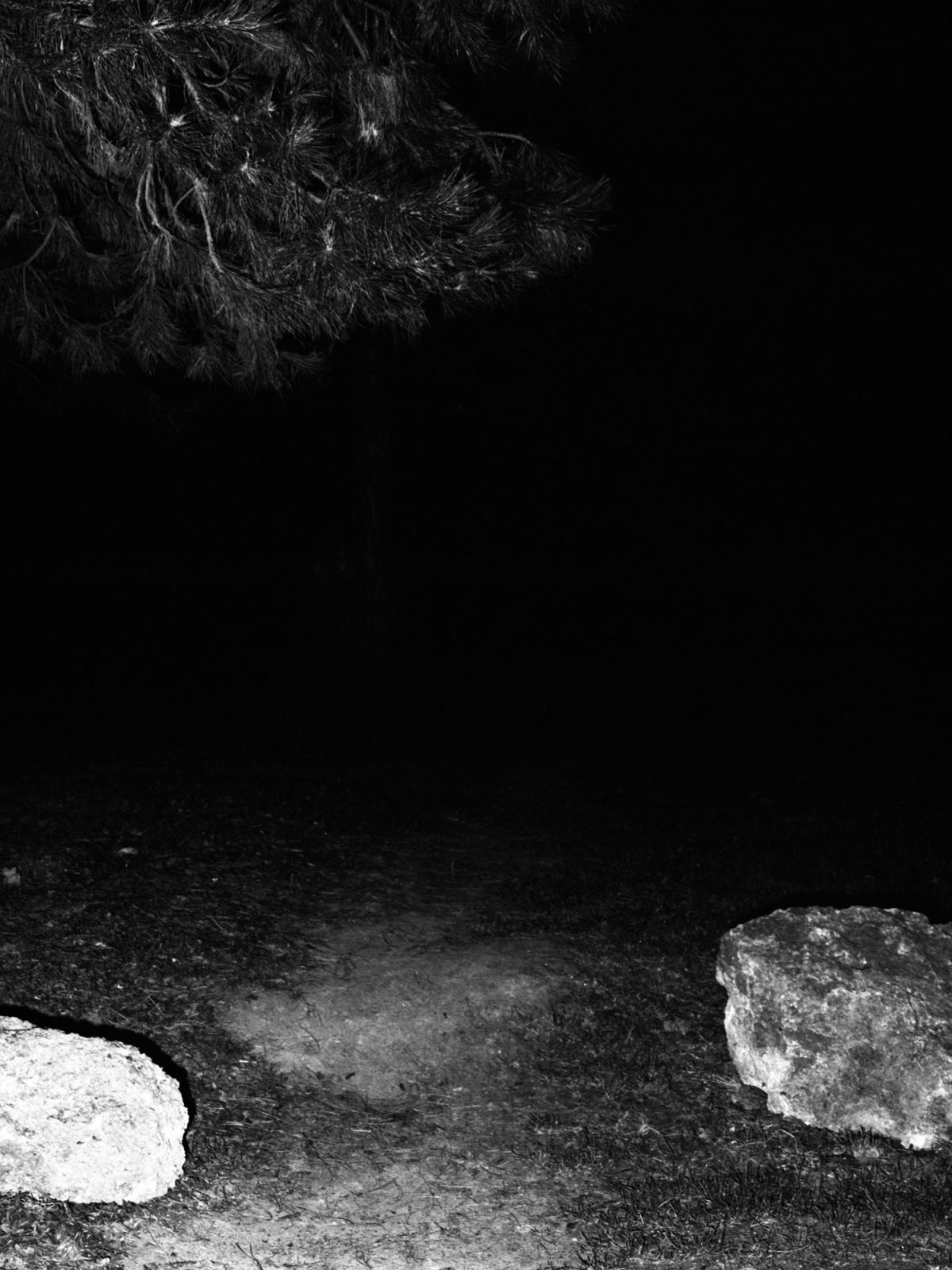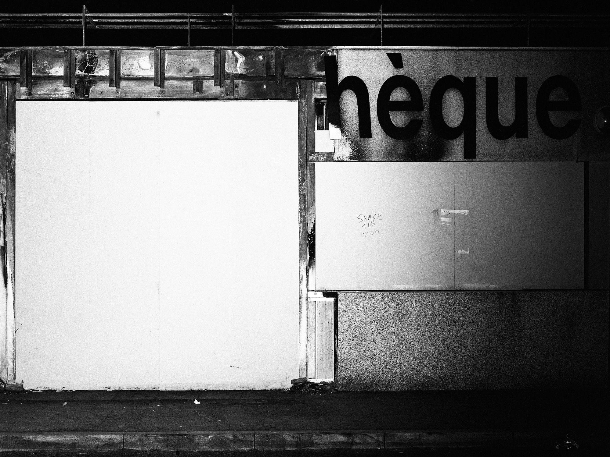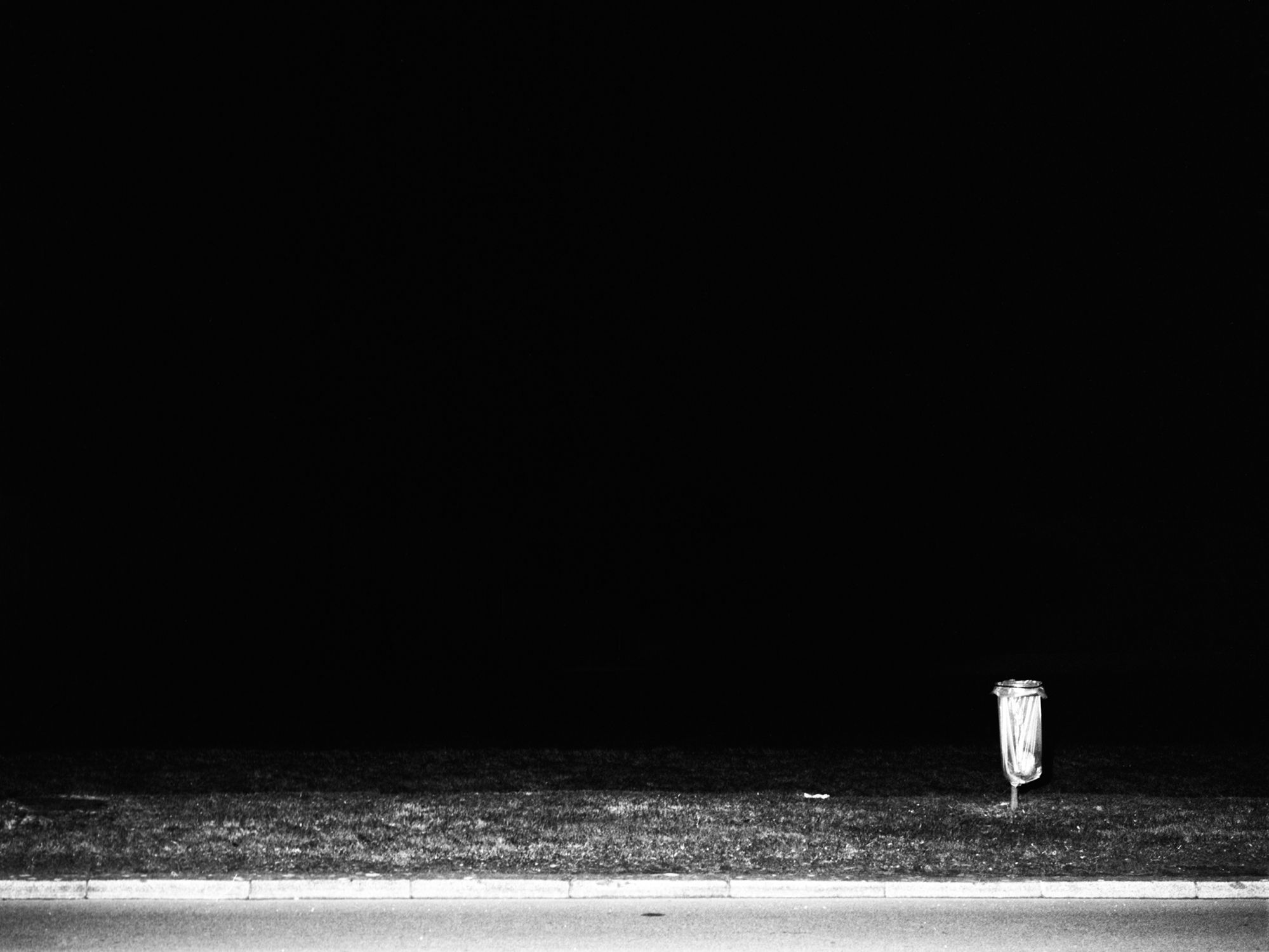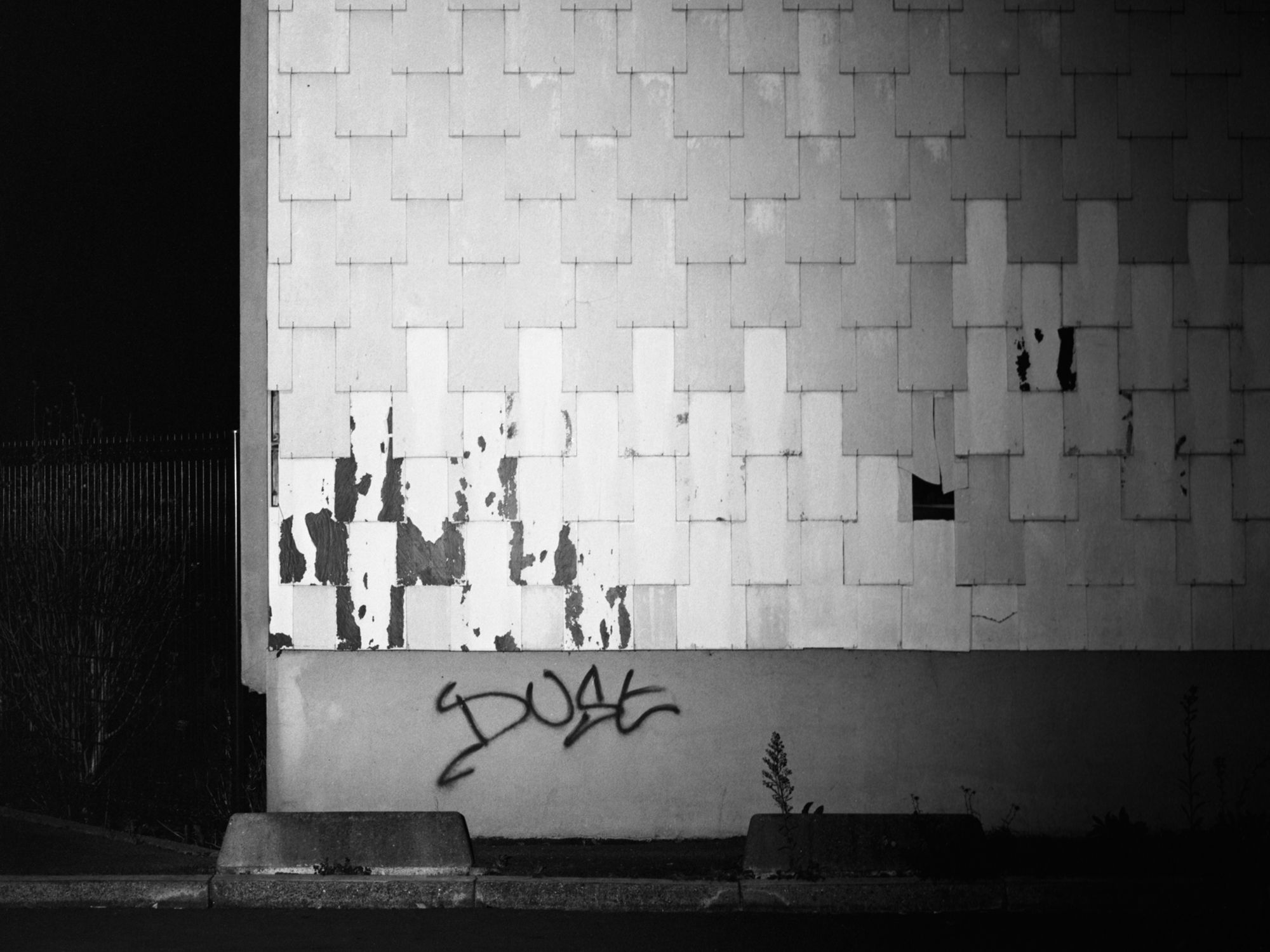 Le projet de Karim Kal suit la ligne D du RER, de Grigny à Corbeil. Les photographies, prises de nuit au flash à courte portée, sont à la fois inquiétantes et familières. Car, au-delà de l'étrangeté de l'image qui se présente, nous connaissons intimement ces formes et ces matériaux, ces passages, ces abris, ces raccourcis qui mènent plus vite à la sortie ou au prochain train. Dans le contraste cru du noir et blanc apparaît également la tension entre l'espace collectif et l'espace privé, entre la planification et l'utilisation, entre l'autorité et la transgression.