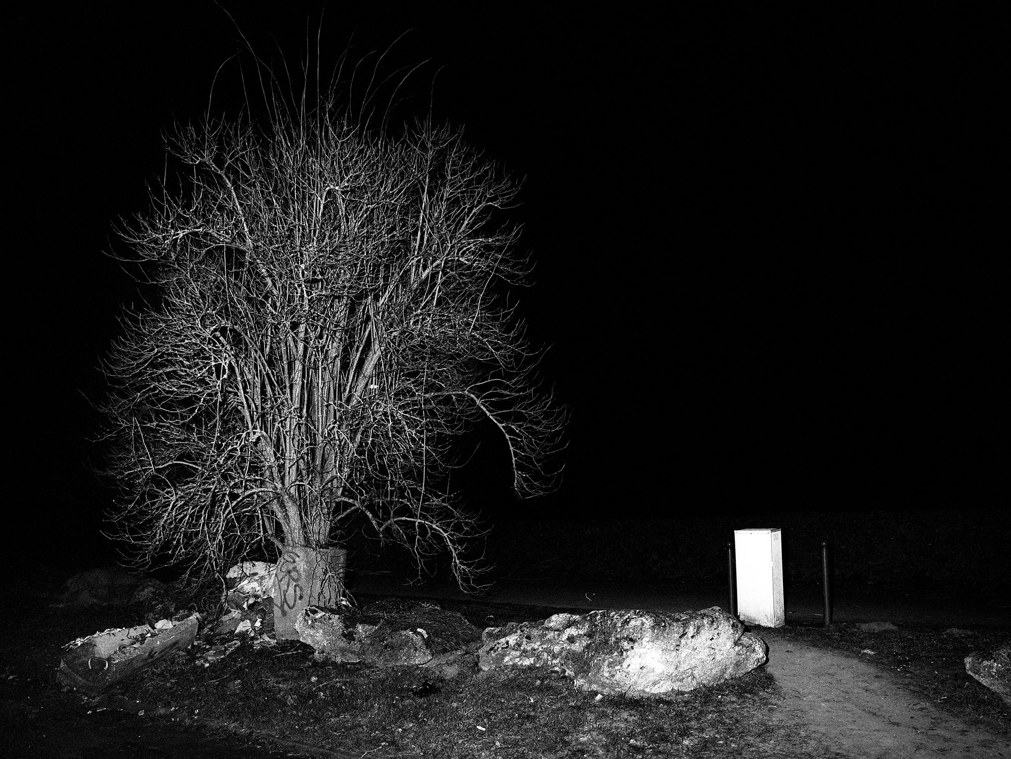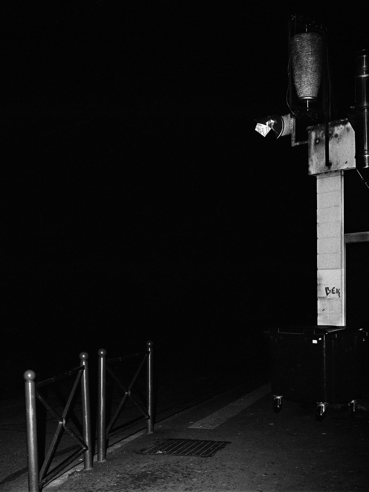 "Images réalisées dans les villes populaires de l'Essonne, le long de la ligne D du RER. De Grigny à Corbeil-Essonnes, la ligne de RER détermine un territoire et accentue le sentiment de relégation du fait de ses nombreux retards. Les paysages nocturnes partent d'indices de la vie collective pour composer des images potentiellement projectives."  Note d'intention, Karim Kal, 2017