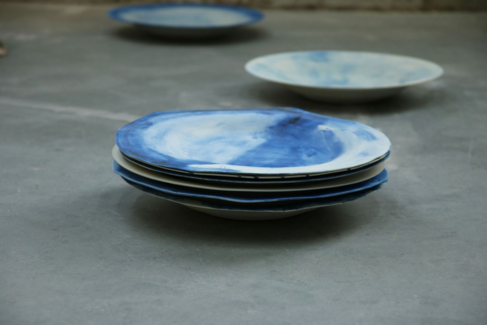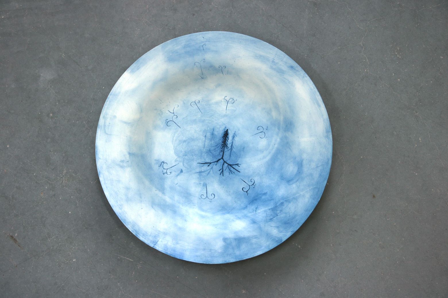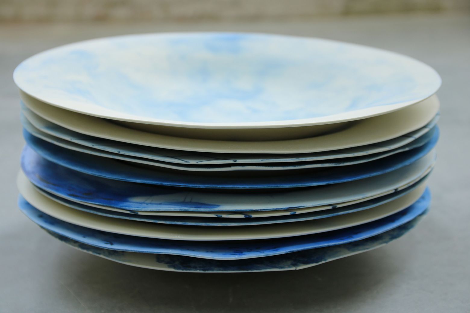 Série de 11 assiettes, porcelaine, oxyde de cobalt, diamètre : 33,5 cm