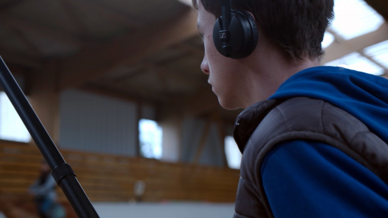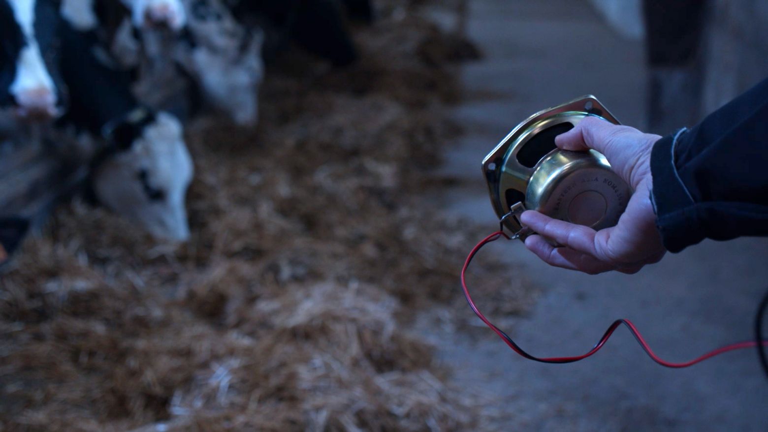 À travers l’aspect très technique de la prise en main du matériel de l’ingénieur du son, du cadreur ou encore du musicien, les jeunes en formation agricole arpentent l’espace de la stabulation automatisée pour collecter toutes sortes de sons. C’est un environnement à la fois familier et opaque qui résonne d’une quantité de bruits impressionnants : machine de traite, effaroucheur pour oiseaux, mélangeur, rumination et souffle des vaches.