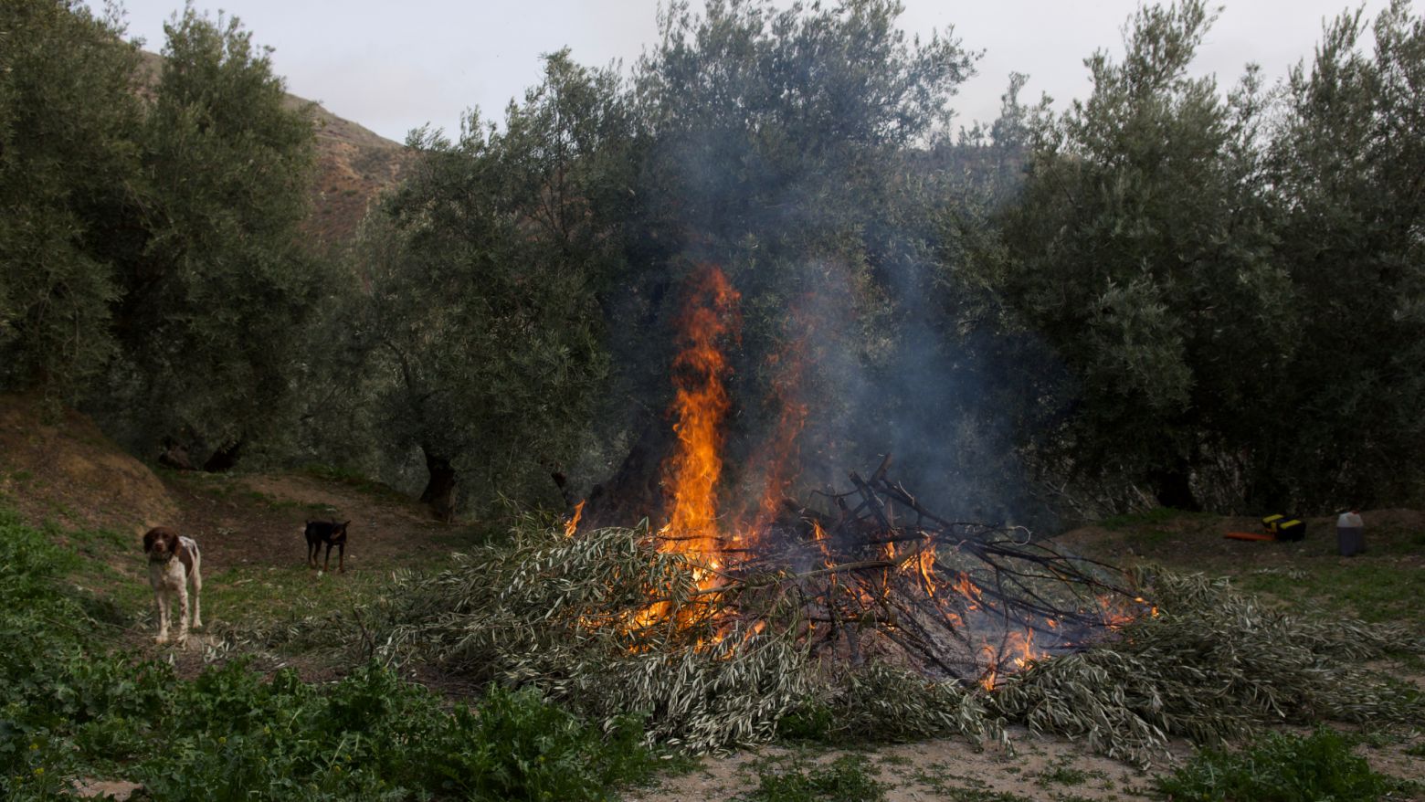 « En février, les habitants du petit village de Gorafe au sud de l’Andalousie taillent les oliviers. De grands feux naissent dans les champs au milieu du désert et des falaises ocres. On aperçoit alors de multiples incendies, des appels incandescents depuis les hauteurs du village. » — LS