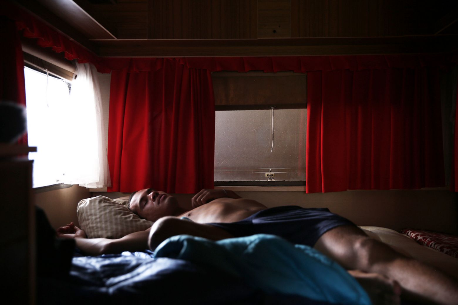 « L’été est une saison brève et orageuse. Une saison où les pluies lavent la terre. Les éléments à l’écran sont réduits à l’essentiel. Le corps des hommes, leur regard, des morceaux du paysage qui les entourent. Il y a ce lieu ni vide, ni habité. C’est le début d’un territoire clos et transitoire. Les hommes s’y entraînent et se préparent à « revenir », revenir au monde et renaître. » — LS