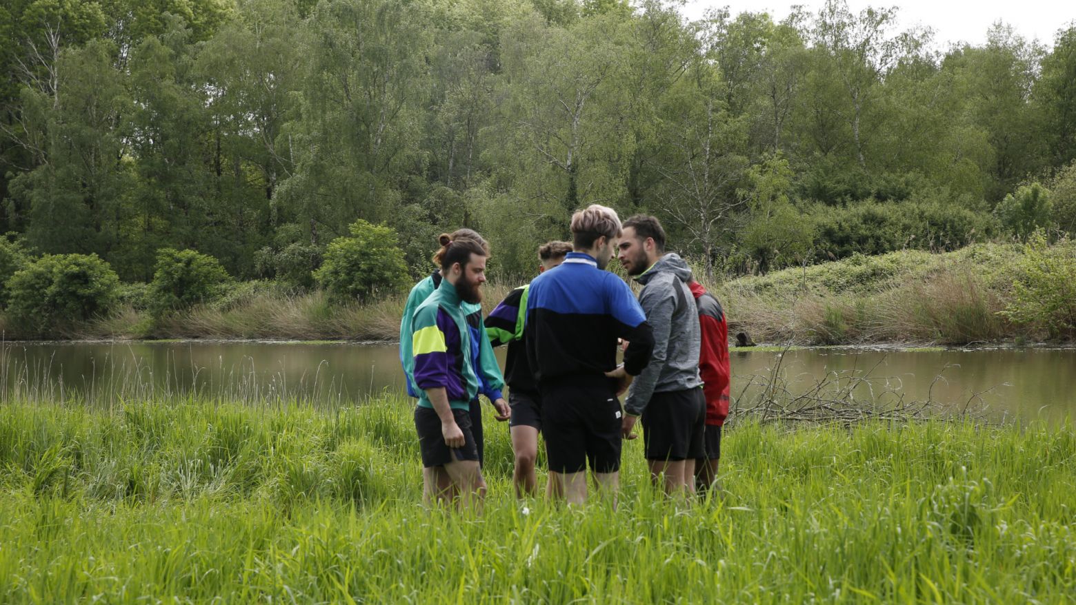 Le printemps est ici une saison de lutte où les hommes s’acharnent en silence jusqu’à l’épuisement. La végétation survient. Le fond flou, ponctué de nappes vertes de lumière, entrecoupe le corps des hommes, qui sont autant d’apparitions dans le mouvement. La nature rappelle à son initiation et à son rite. Elle est tout à la fois les abords, les alentours et les contours.