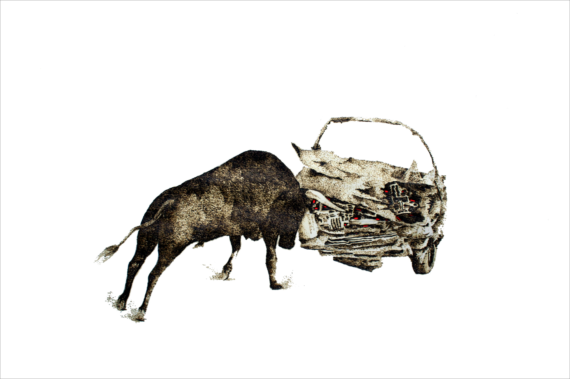 Aquarelle, encre de Chine et peinture de marquage en bombe, 50 x 65 cm