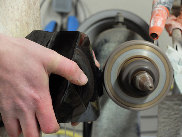 Si l'on regarde Prism de profil, sous la lumière changeante, on perçoit une couche transparente illuminant les bords tandis que le noir est d'encre à l'intérieur. La deuxième étape de la rencontre avec l'œuvre se poursuit en changeant de registre artistique, il ne s'agit plus seulement de regarder mais aussi d'écouter. Ou d'ausculter le cœur de la forme, la carte mémoire insérée dans la pièce en verre, comme la tablette et le cordon qui nous relient à elle, le suggèrent. Des récits différents se dissimulent dans chaque « pierre », l'un, 133 rue de Moscou, raconte la vie d'une femme dans les « baraquements » construits dans une ville du Nord, à Etaples, par les Américains, après guerre ; l'autre, 2 ans, 2 mois, 2 jours, relate les archives attestant de la requête en reconnaissance administrative de service de travail obligatoire dans les usines allemandes d'un homme lui aussi d'Etaples, lors de la deuxième guerre mondiale.